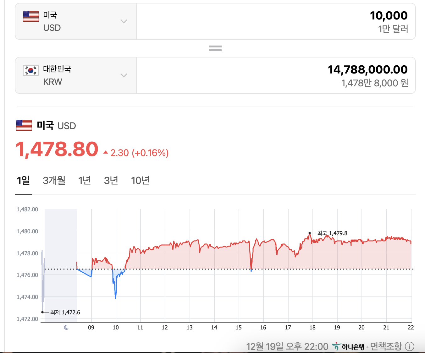 ✔️미화 1만달러는 한화로 약 1,479만원 입니다 (2025년 12월 19일 환율 기준).