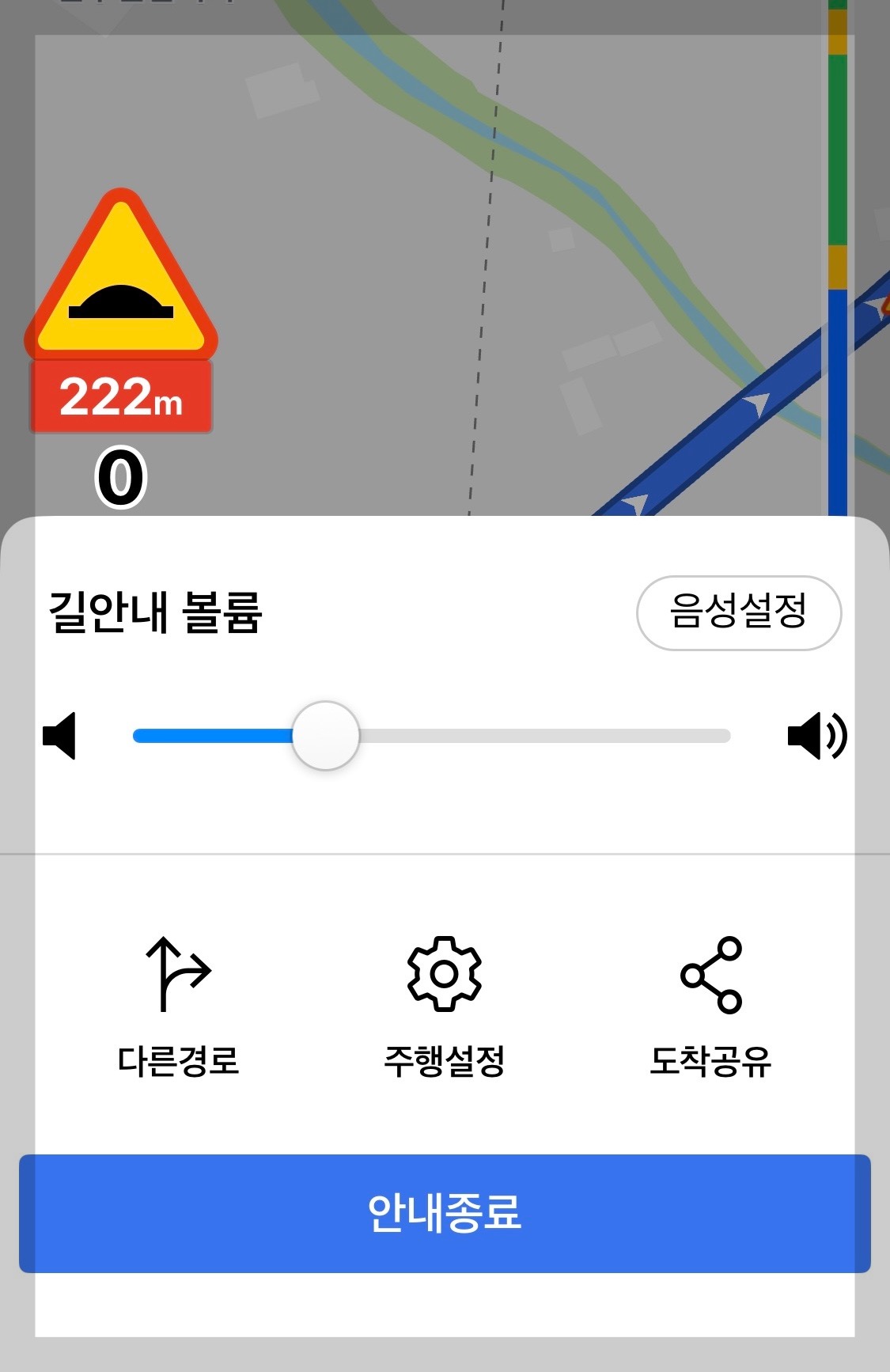 위 이미지는 티맵에서 목적지 설정후 안내를 시작했을 때 나오는 화면입니다.
