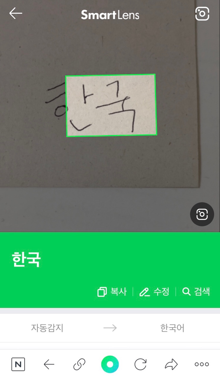 그리고 그 아래에는 렌즈가 읽은 글자가 나타나구요.