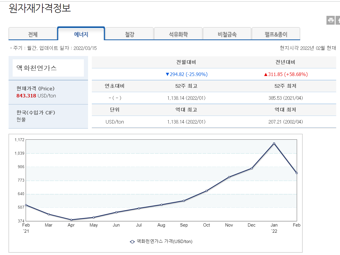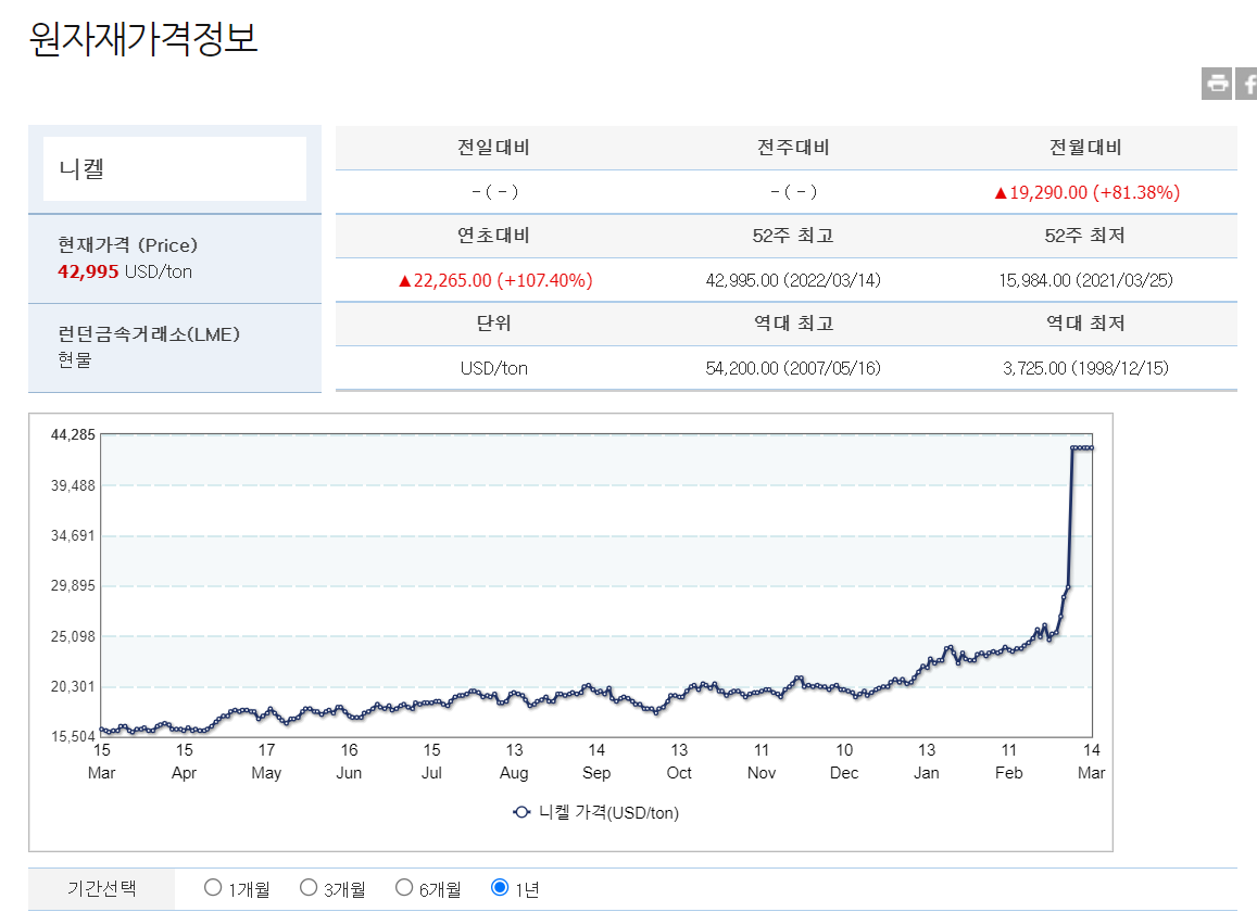 액화천연가스, 두바이유, 니켈의 1년 추이를 살펴봐도, 급등은 급등이다.