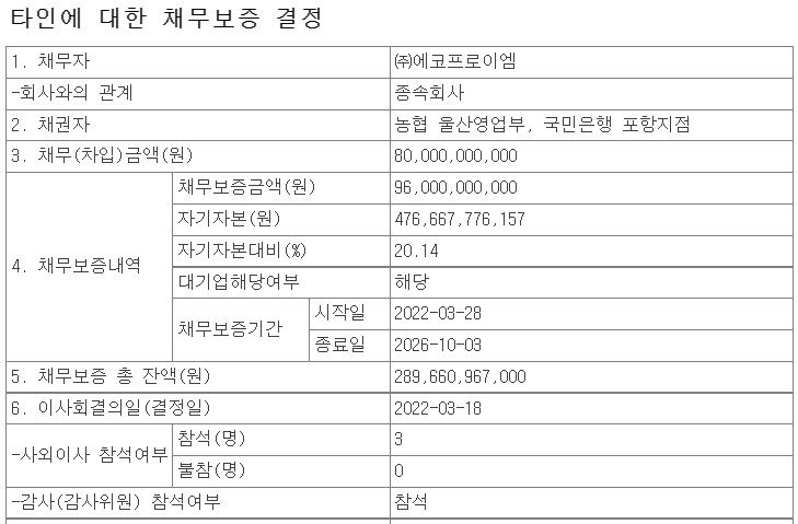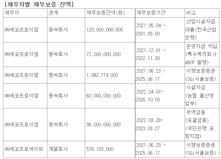 에코프로비엠, 에코프로이엠 960억 채무 보증