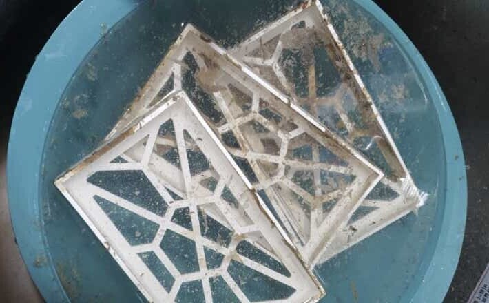 유병숙씨의 집에 설치된 미세플라스틱 필터의 모습. 미세플라스틱이 포함된 검은 찌꺼기가 끼어 있다. 유병숙씨 제공