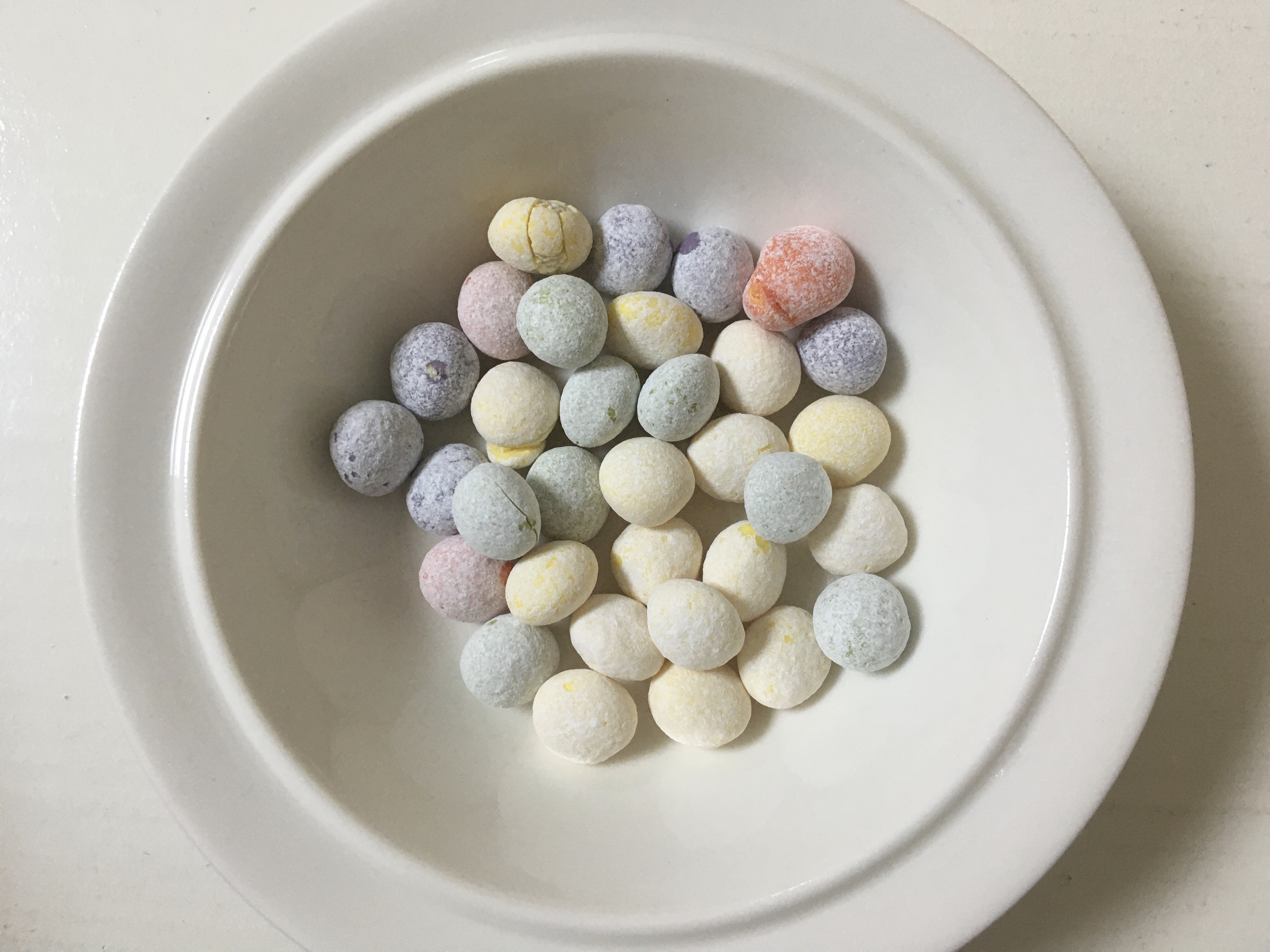 하얗고 새콤한 가루가 겉에 뭍어있어요.
