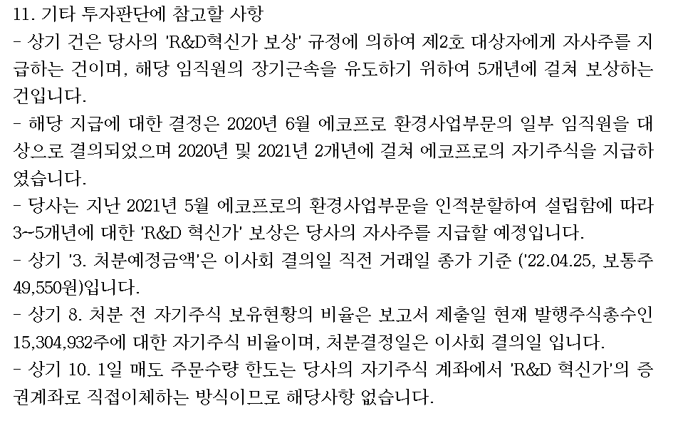 ■2022.04.26 에코프로에이치엔 자기주식 처분 결정 공시