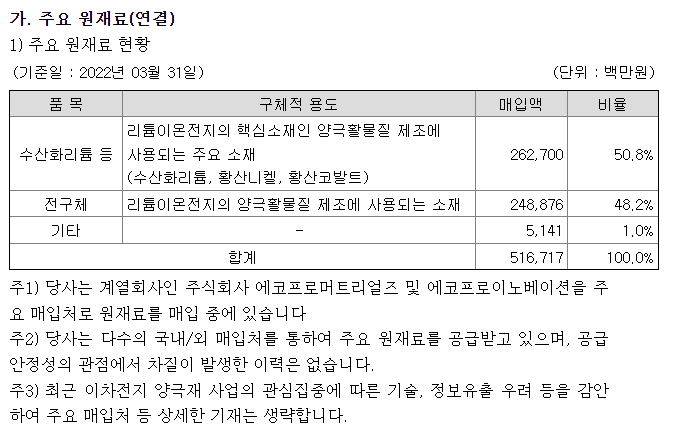 에코프로비엠 2022년 1분기 분기보고서 (2022.05.16) 발췌