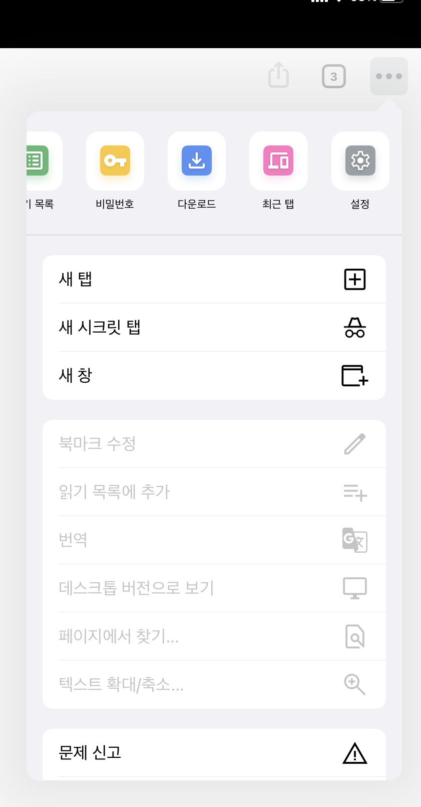 1. 크롬 브라우저 우측 상단에 있는 점 3개 아이콘을 클릭합니다.