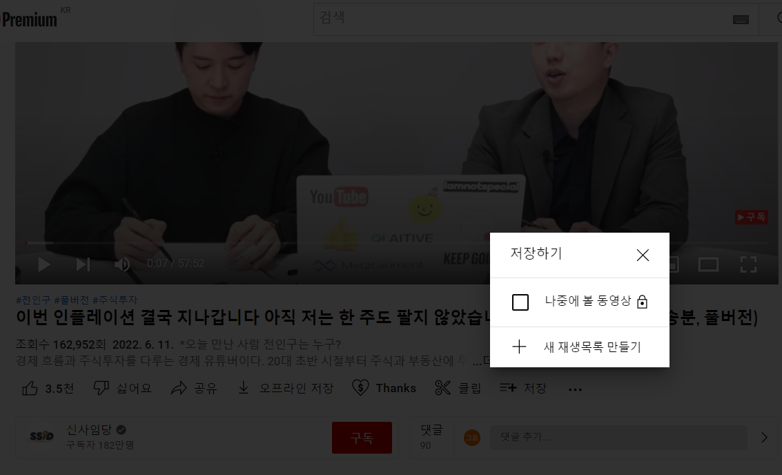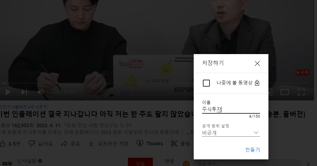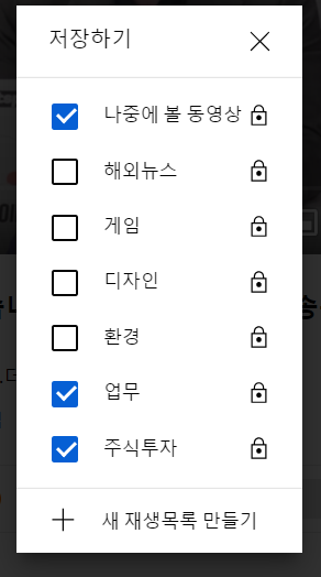 나중에 볼 동영상 아래에 보시면 +새 재생목록 만들기 라고 보이는데요,