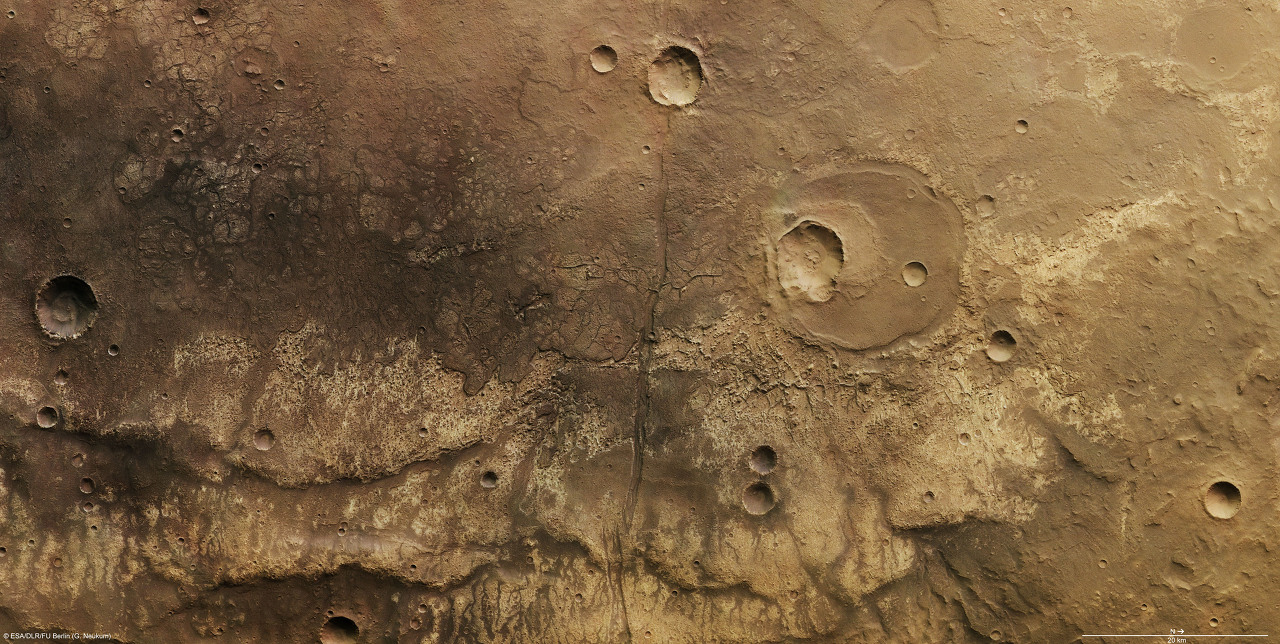 북반구는 용암류에 의해 평평하게 만들어진 평원이 펼쳐져 있고,