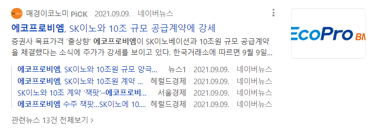 그리고 그날 2021.9.9 에코프로비엠 주가는 강세였다.