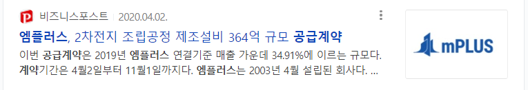 => 엠플러스는 전기자동차용 리튬이온 이차전지 조립공정 장비 제조사