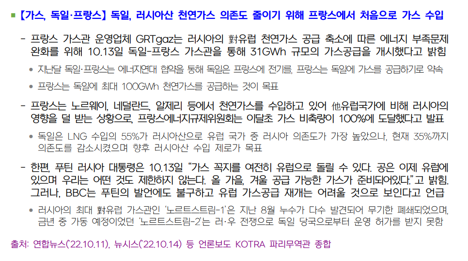 독일, 러시아로부터의 LNG수입 의존도 55%-> 35%까지 감소시켰고, 향후 0%가 목표.