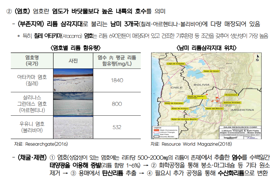 리튬 삼각지대로 불리는 남미 3개국-칠레, 아르헨티나, 볼리비아에 다량 매장