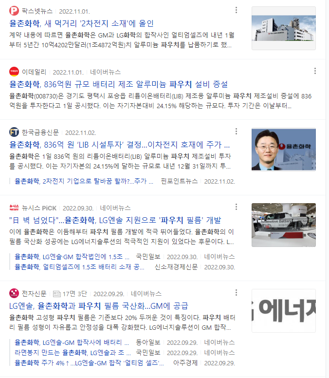 9월에는 미국 얼티엄셀즈와 1조원이 넘는 규모의 배터리 파우치 공급계약을 체결했다고 하네요.