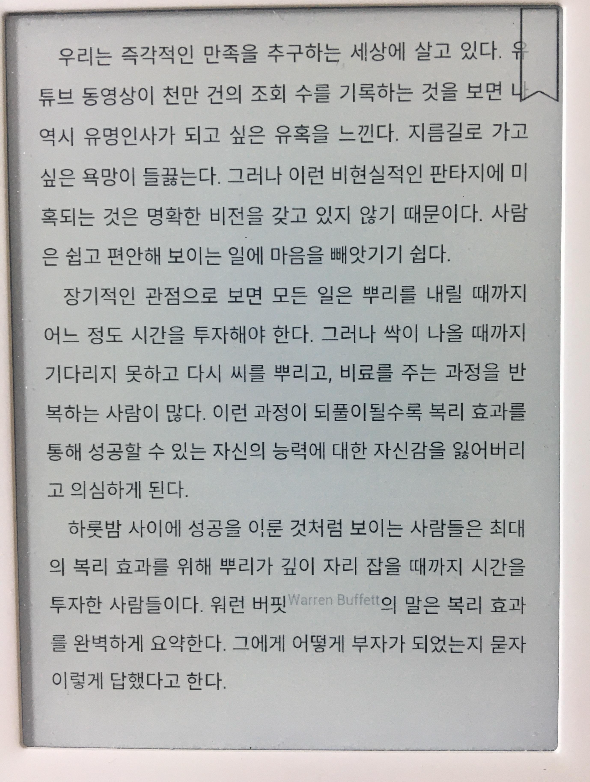 부자들이 혹은 성공한 사람들이 한목소리로 이야기하는데는 다 이유가 있다. 어떤 영역에서든 성취를 해보면 백만장자들이 왜 이렇게 복리를 강조하는지 나도 알게 되겠지. 기다림이 필요하다. 복리를 만들기 전까지.