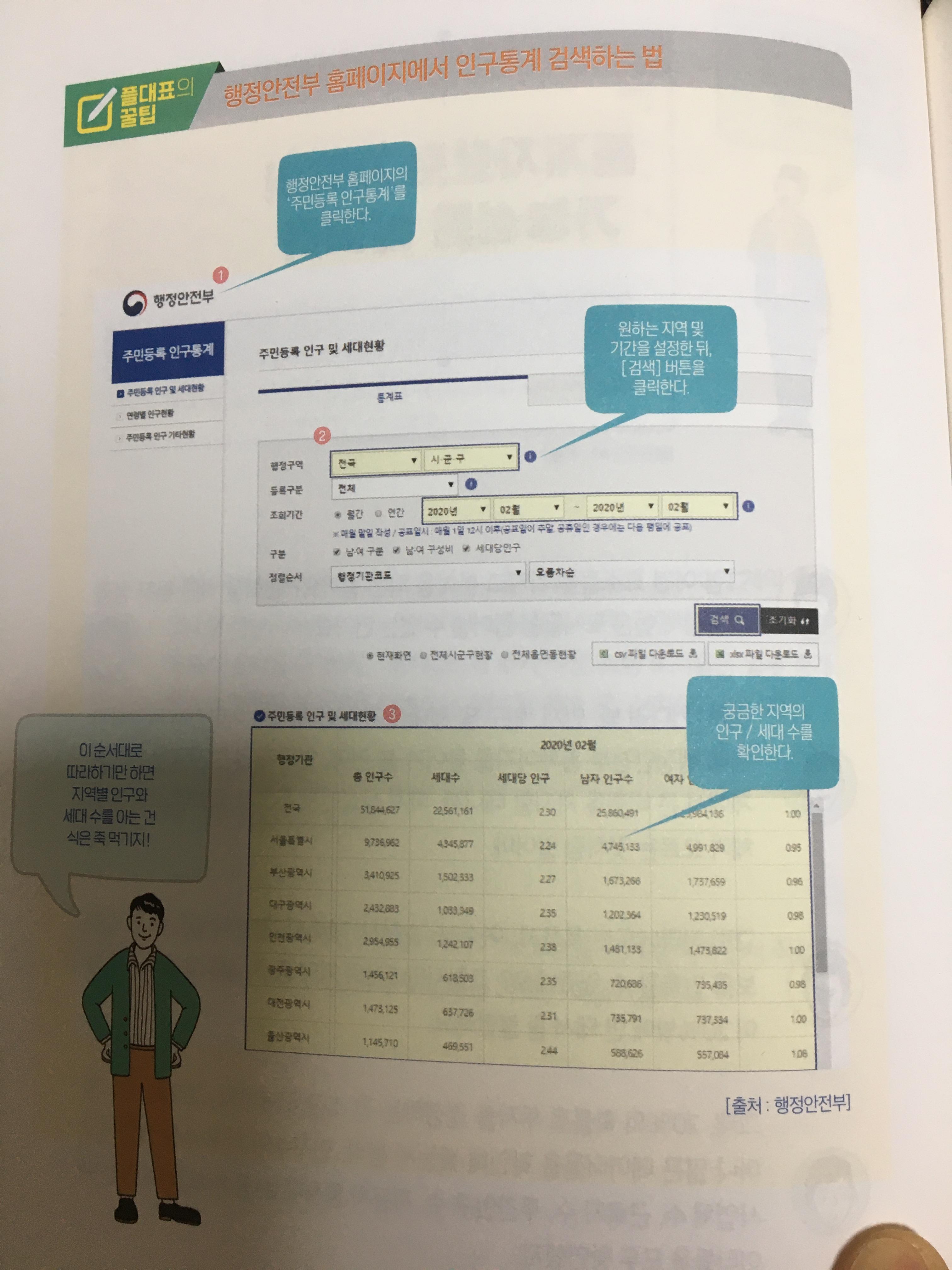 저자는 인구 및 세대 수가 높은 지역이 어디인지 파악하기 위해서 행정안전부 홈페이지를 들어가봤다고 했다.