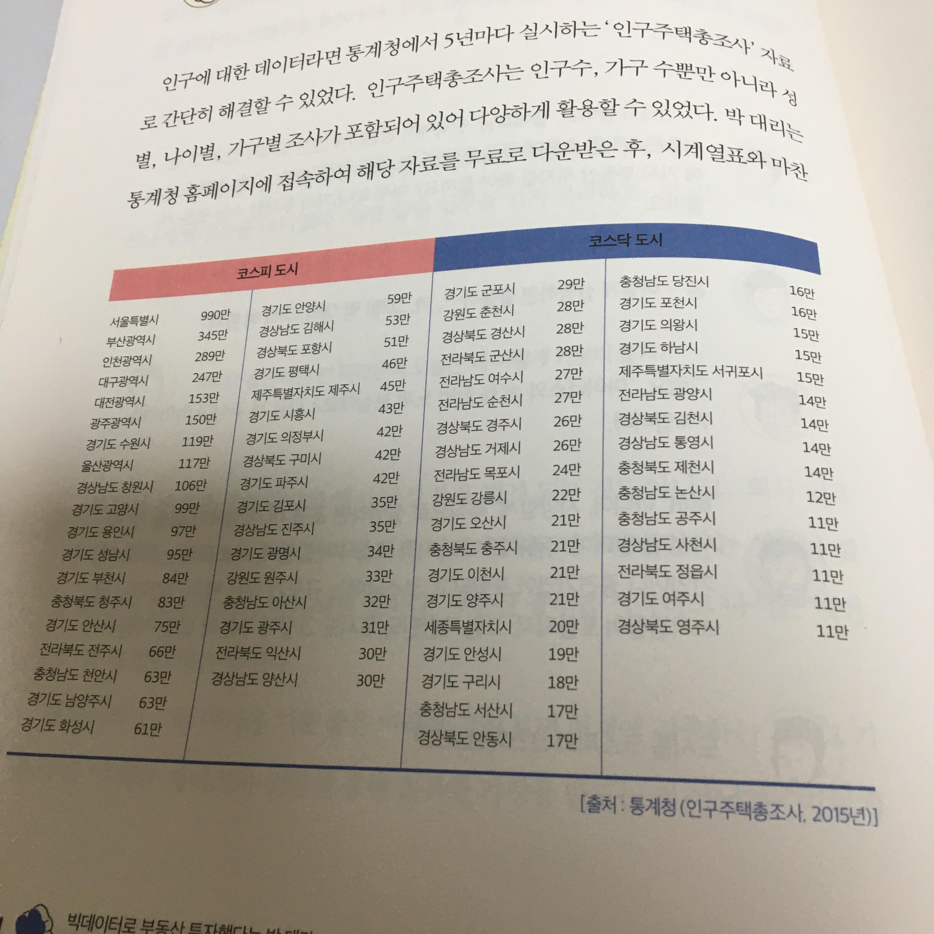 인구수를 바탕으로 30만 명 이상이면 코스피 도시, 10만 명 이상~30만 명 미만이면 코스닥 도시라고 설정해서 해당되는 도시 및 인구수가 정리된 표가 나오는데 통계청에는 유용한 데이터가 참 많은 것 같다.