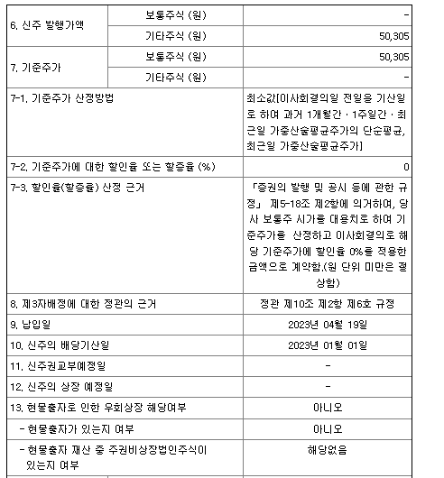 신주 발행가액은 50,305원이다.