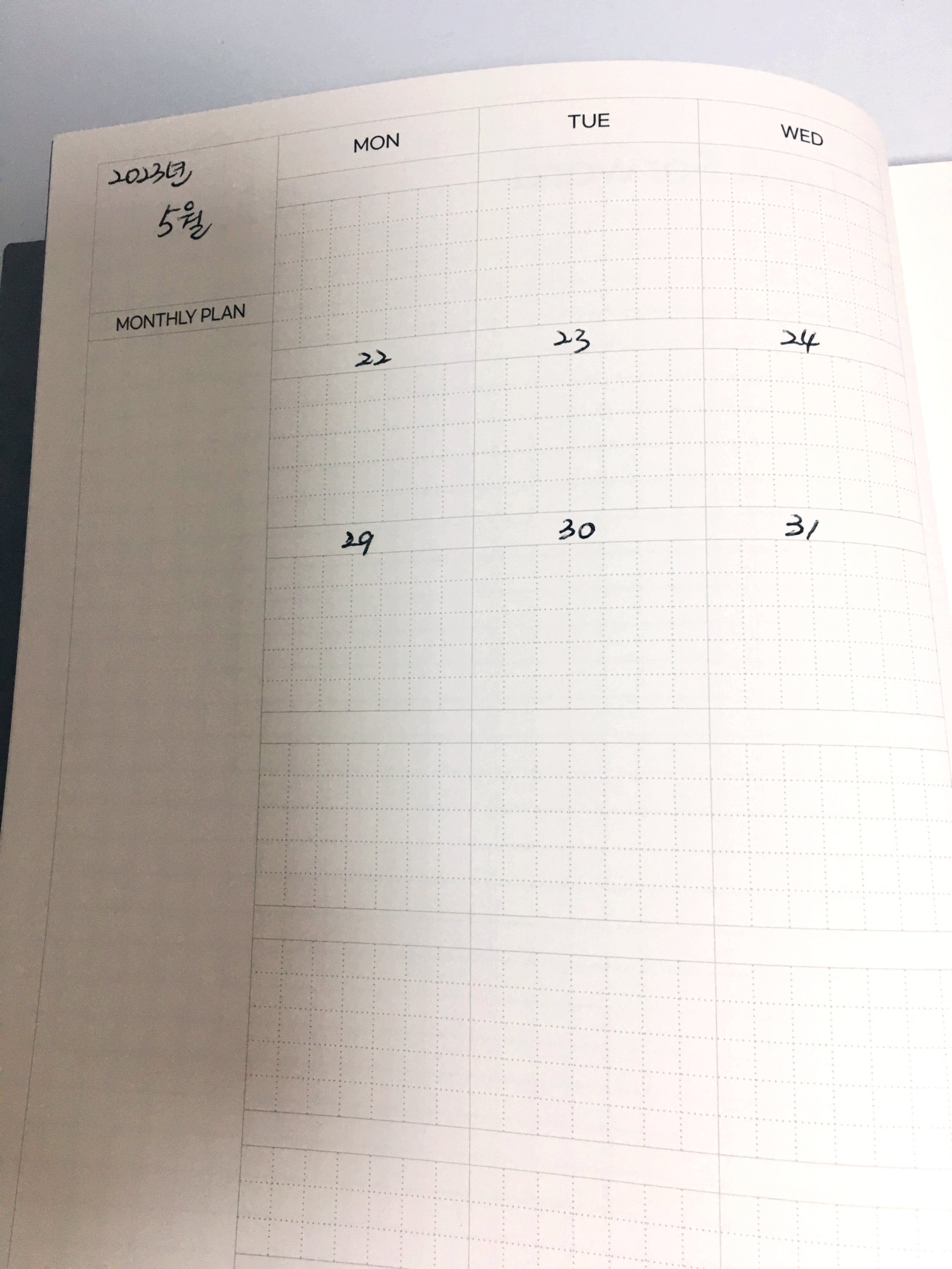 1) 년도가 지정된 노트가 아니어서 매달 날짜를 일일이 적어야 하는 건 감안해야 한다.