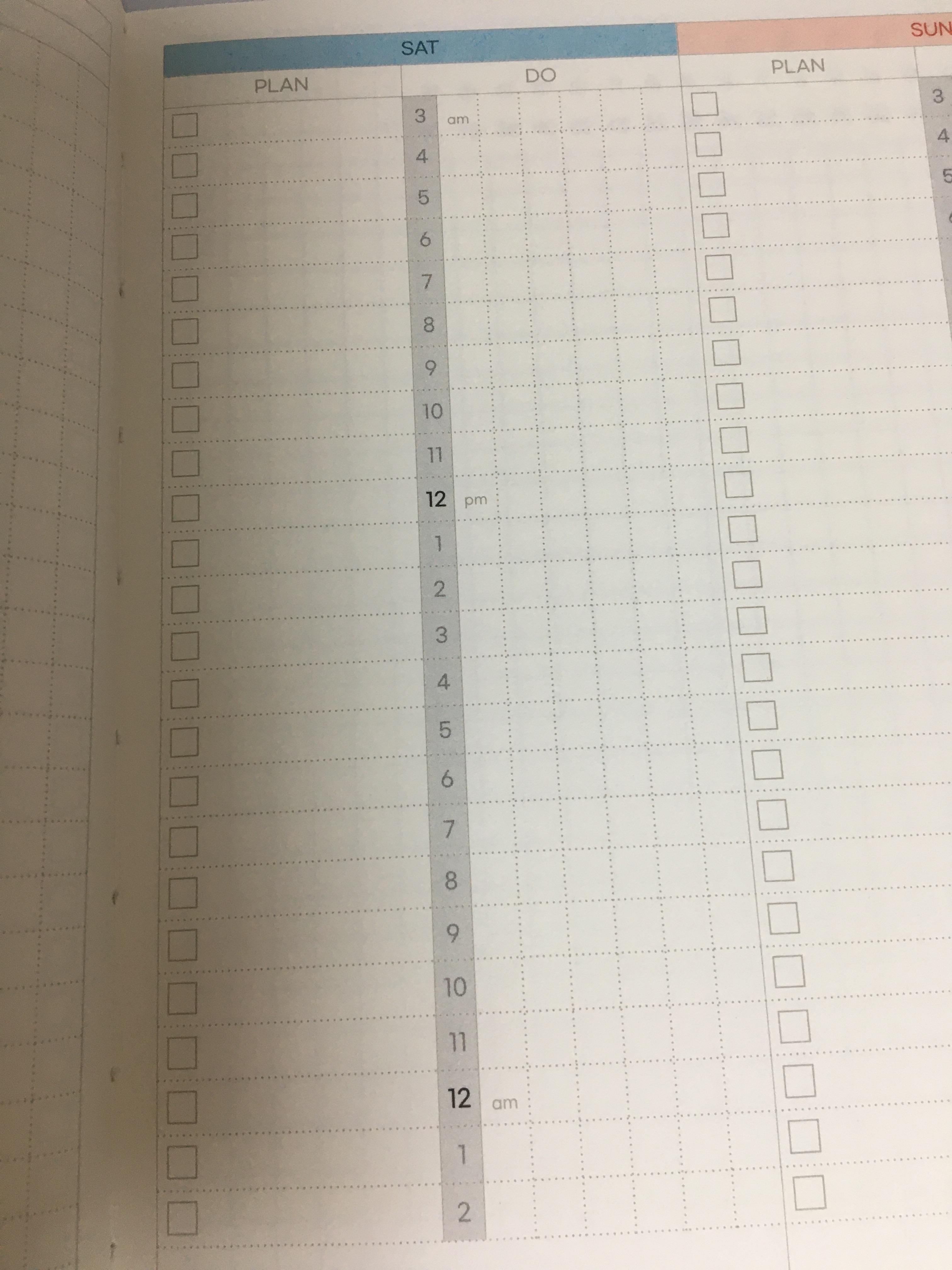 2) 위클리여서 한주 단위로 되어있는데, 일일 별로 한쪽은 PLAN,한쪽은 DO이다.