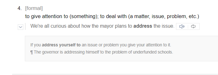 address는 위 문장에서 여러 뜻 가운데 이 뜻으로 쓰인 것 같다.