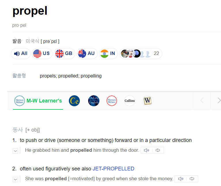 참고로 propel이 사람에게도 쓰인다. 사람도 propel할 수 있다.