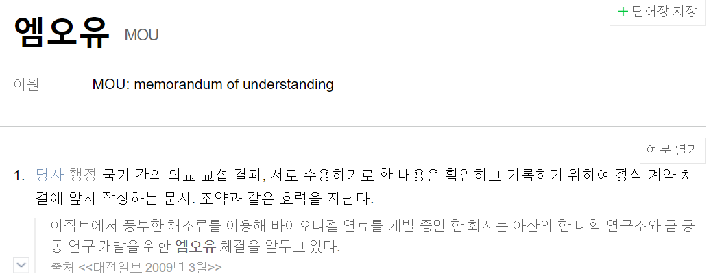 MOU의 M이 본래는 Memorandum이고, U는 Understanding이구나. 배워간다.