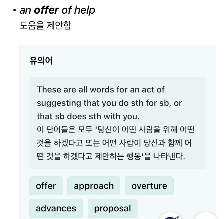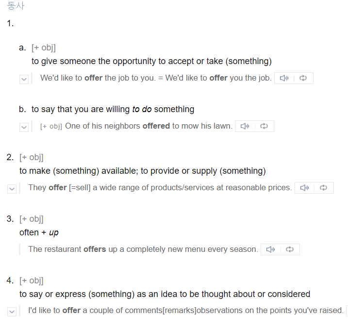 동사 offer 뜻 중에서-