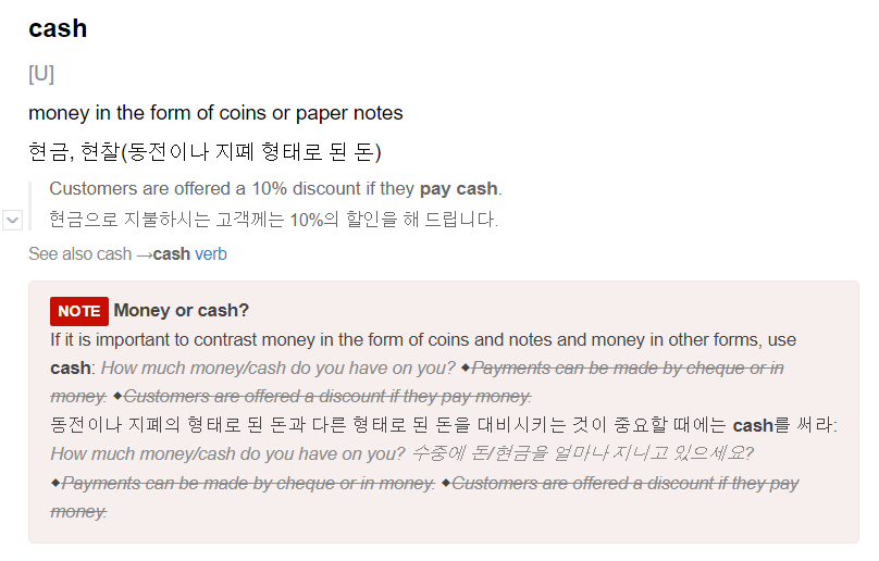 money vs cash 차이