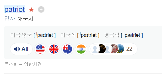 patriot 은 [pei] 또는 [pae]로 발음된다.