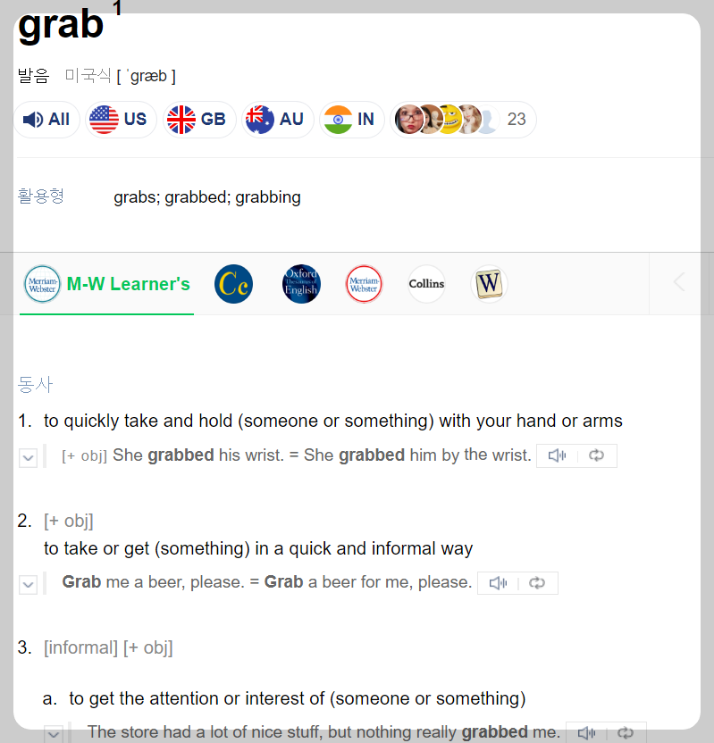 동사 grab -여기서는 3번의 뜻으로 쓰였다.