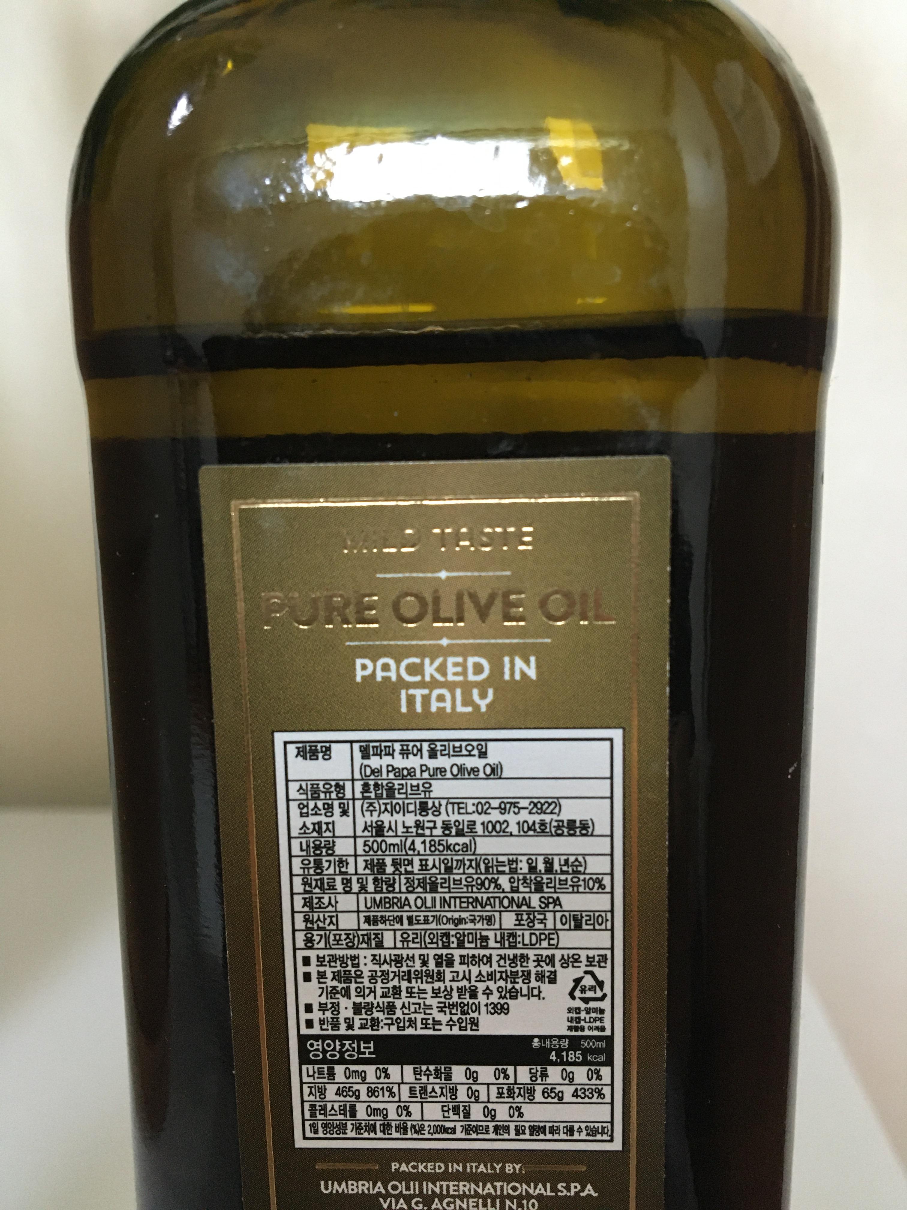 델파파? 라고 읽어야 하나. 맞네. 델파파 퓨어 올리브유다.