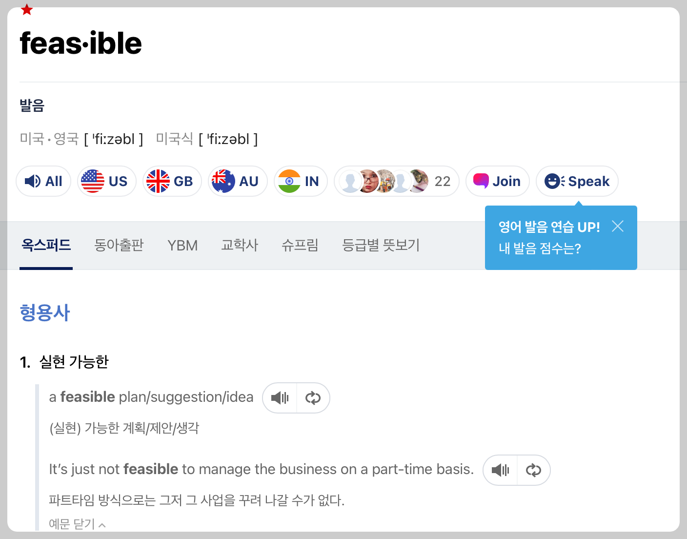 아래는 feasibility의 형용사형인 feasible의 뜻인데, possibility를 놔두고 굳이 왜 또 비슷한 단어를 만들었는지 모르겠다...