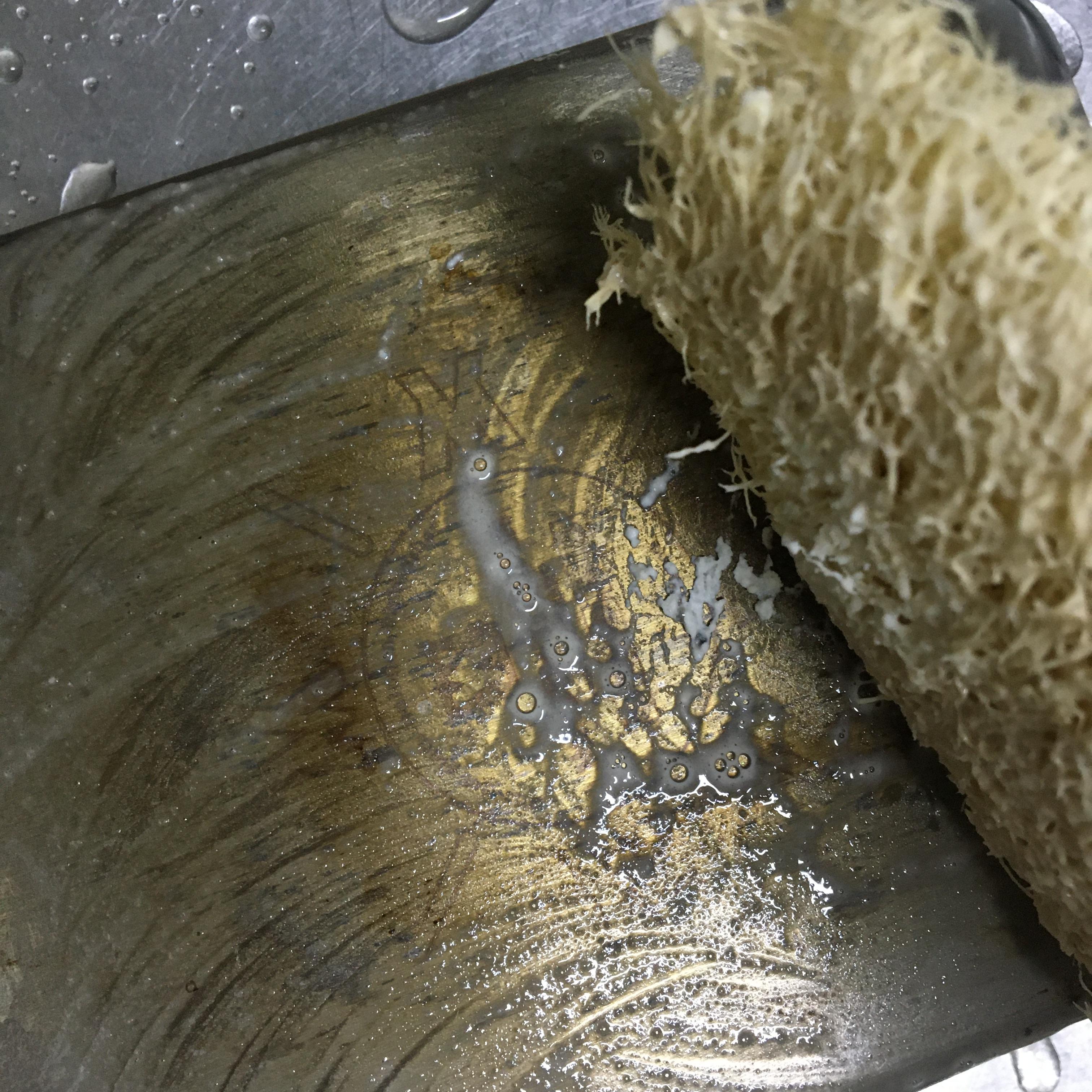 천연수세미에 한스푼 떠서 문질러보기로 했다.