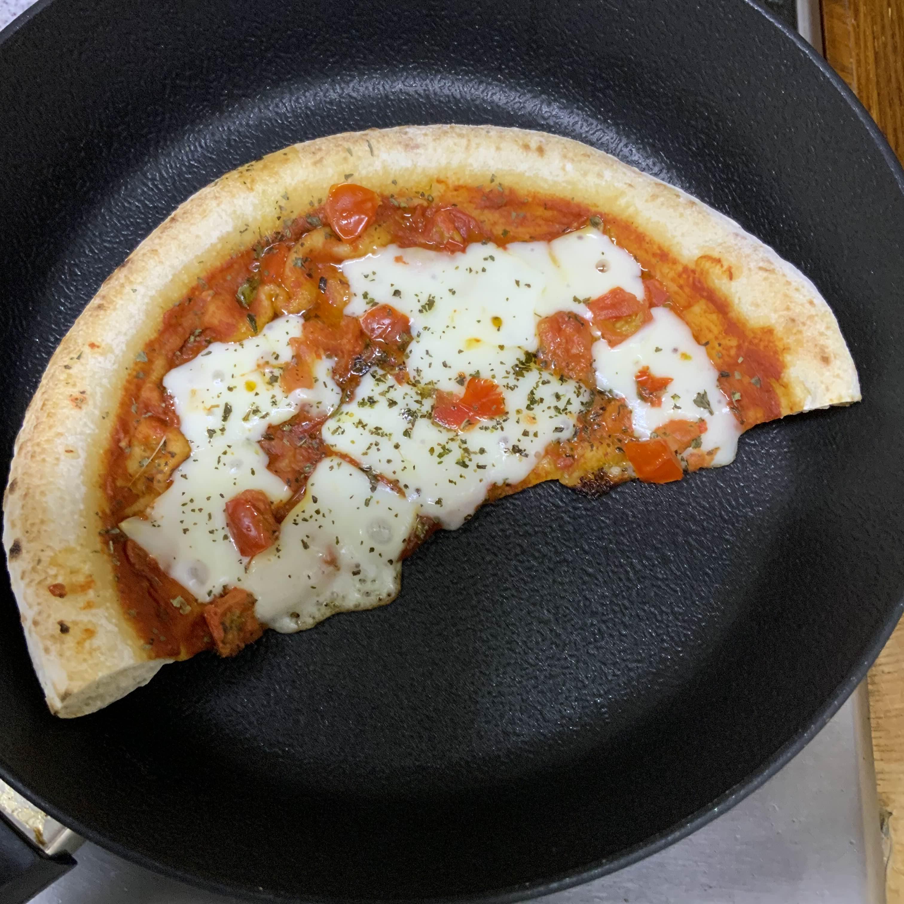피자를 올리고 적당히 치즈가 잘 녹았을 때 불을 껐다.