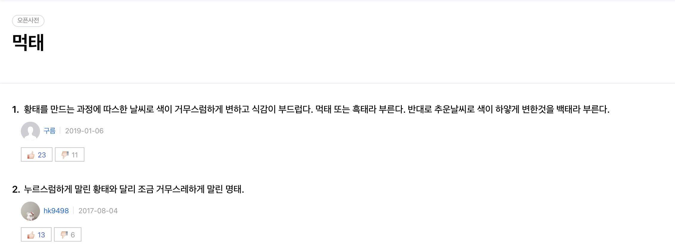 그나저나 먹태는 어떤 생물인지 궁금해서 찾아봤더니 국어사전엔 안 나오고 오픈사전에 이렇게 적혀있다.