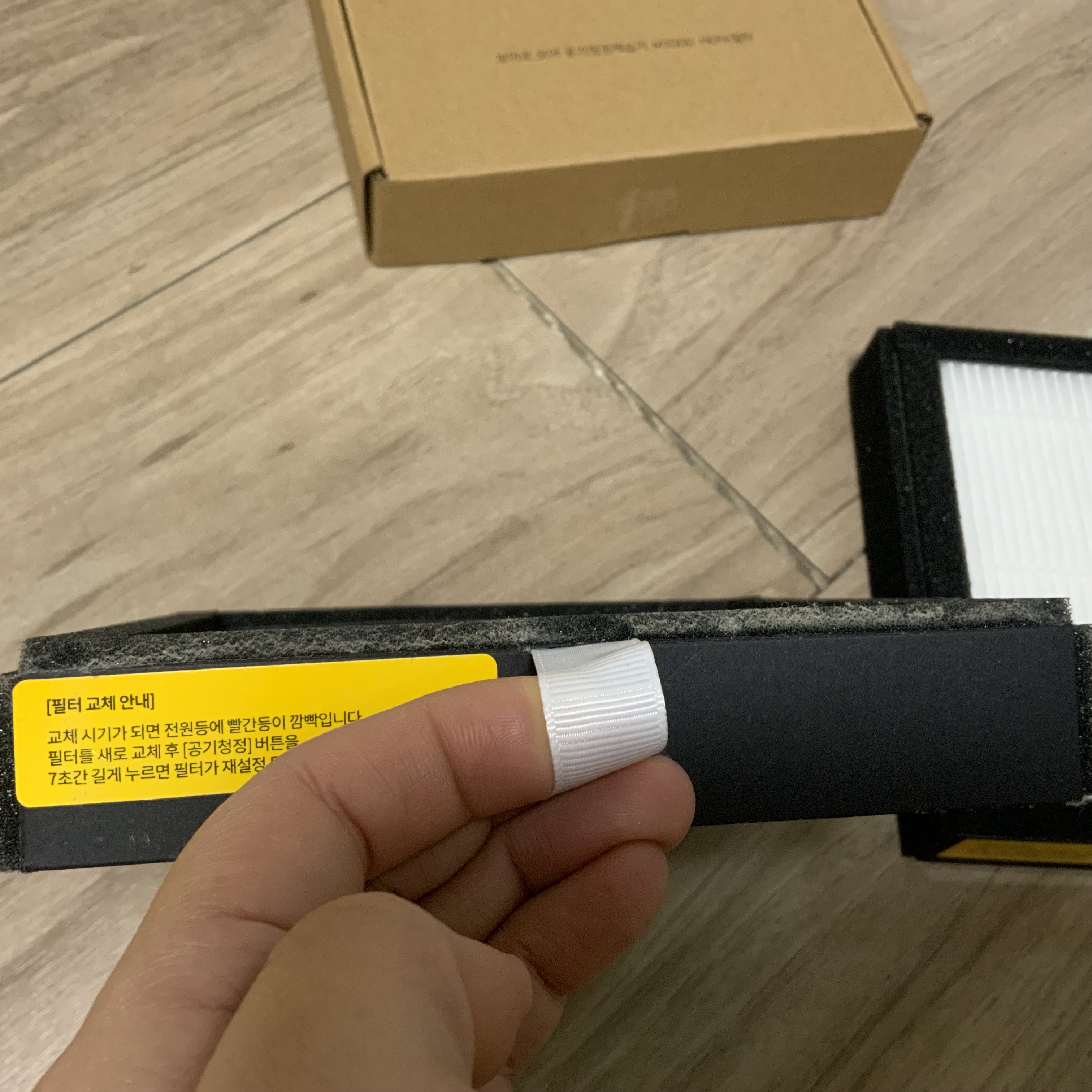 한겹 싸여있는 비닐 포장을 벗기면 이렇게 새 필터가 나온다.