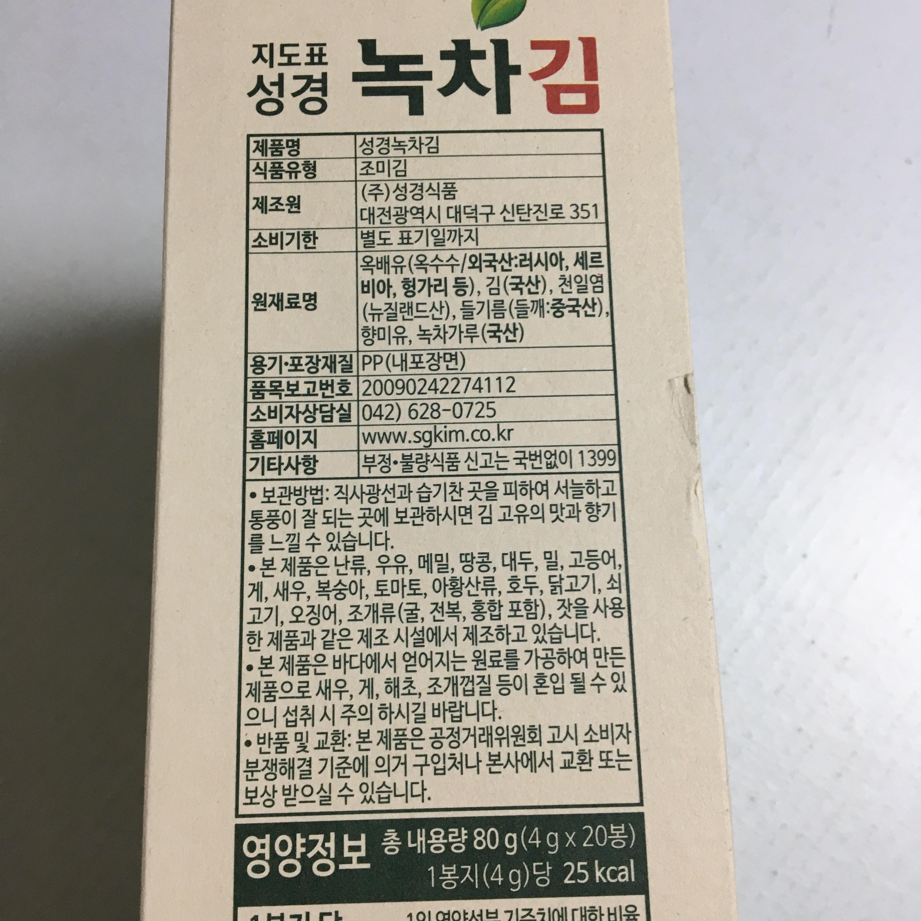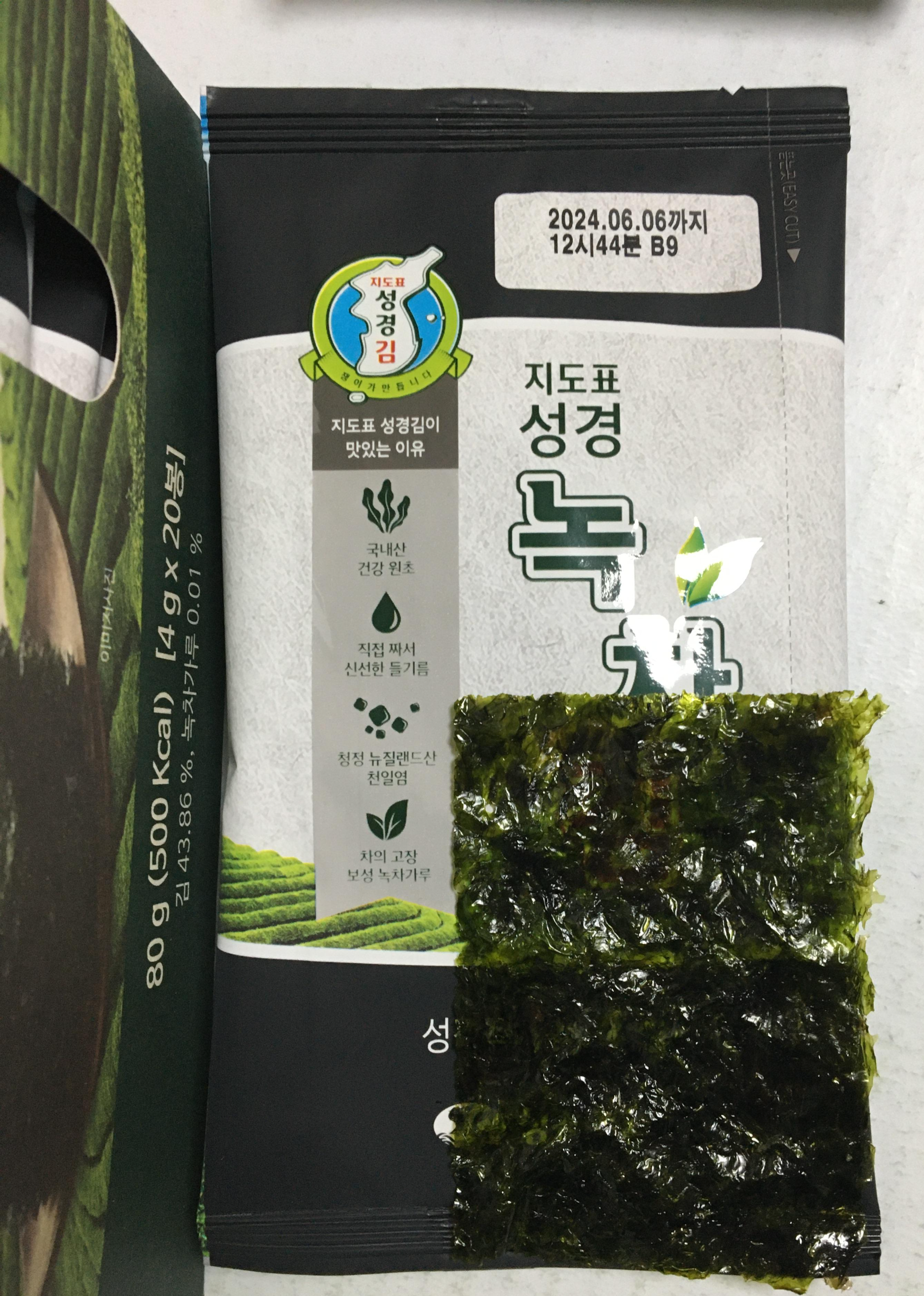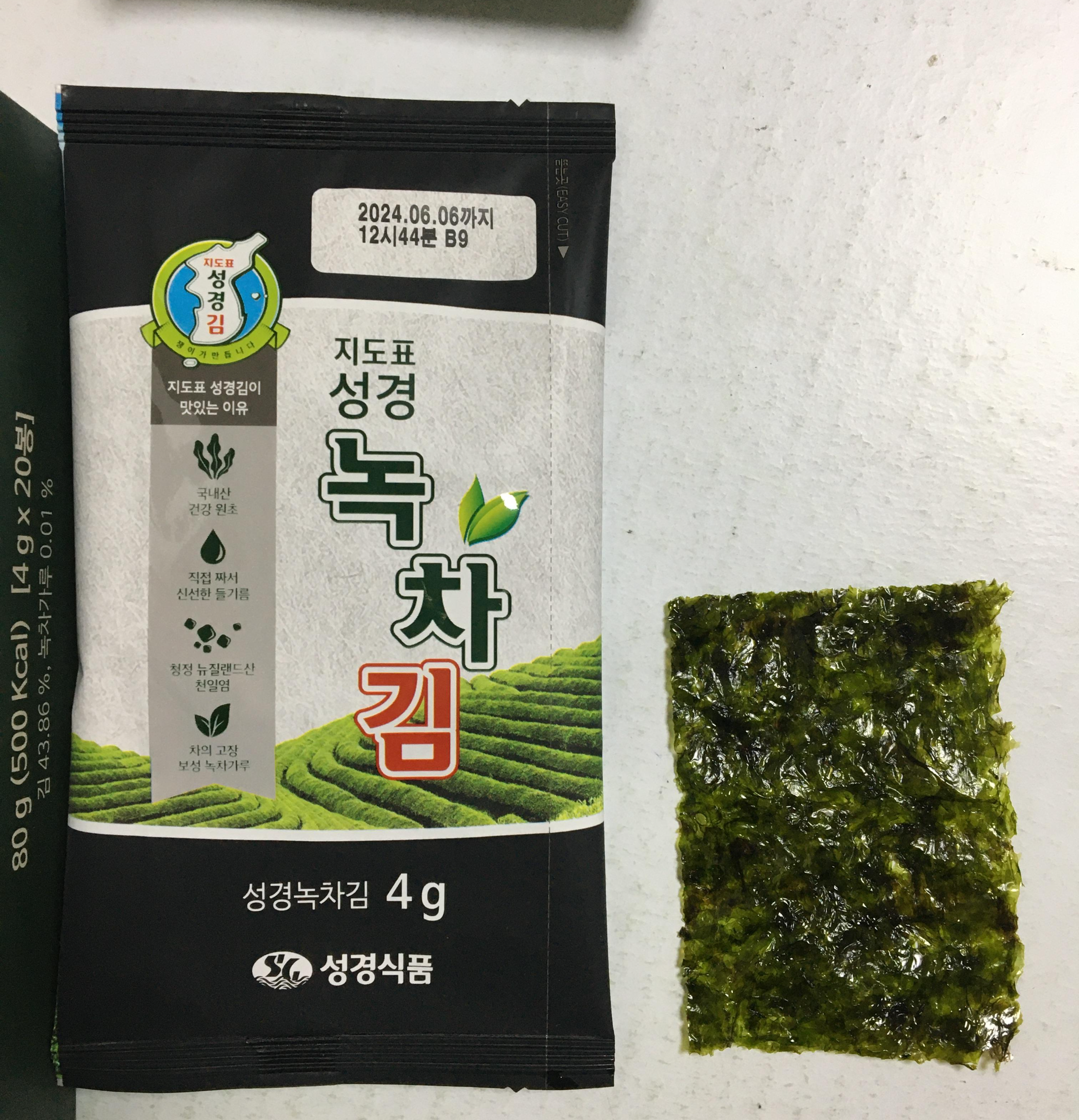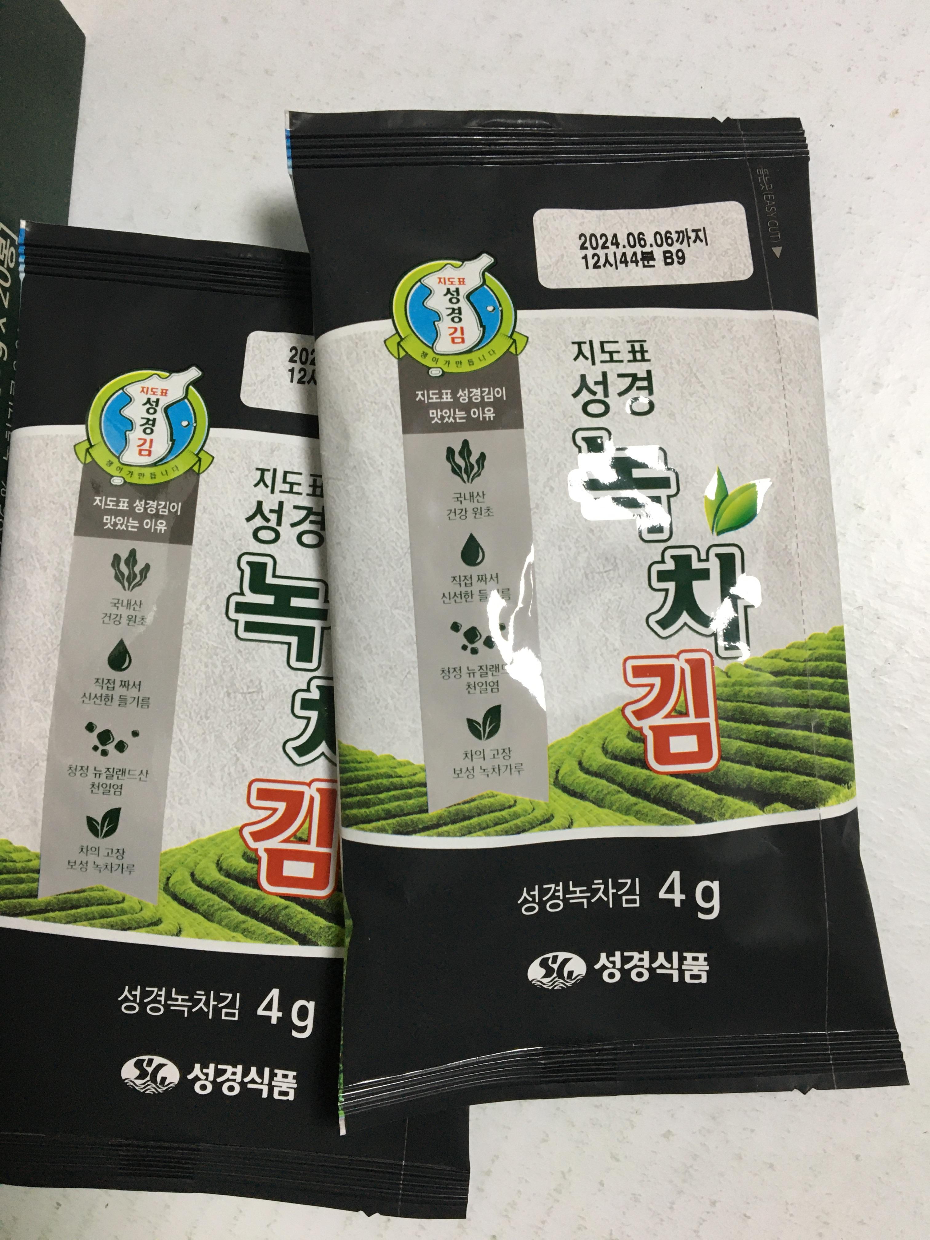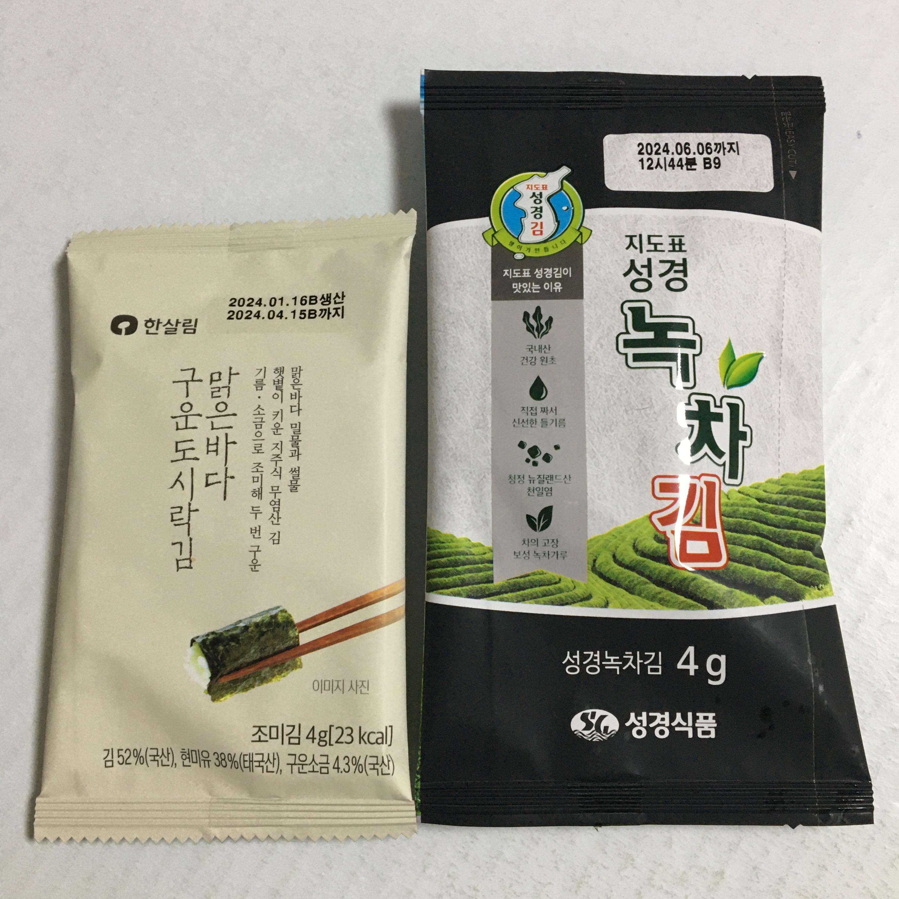 집에 하나 남아있던 한살림 낱개 김과 비교.