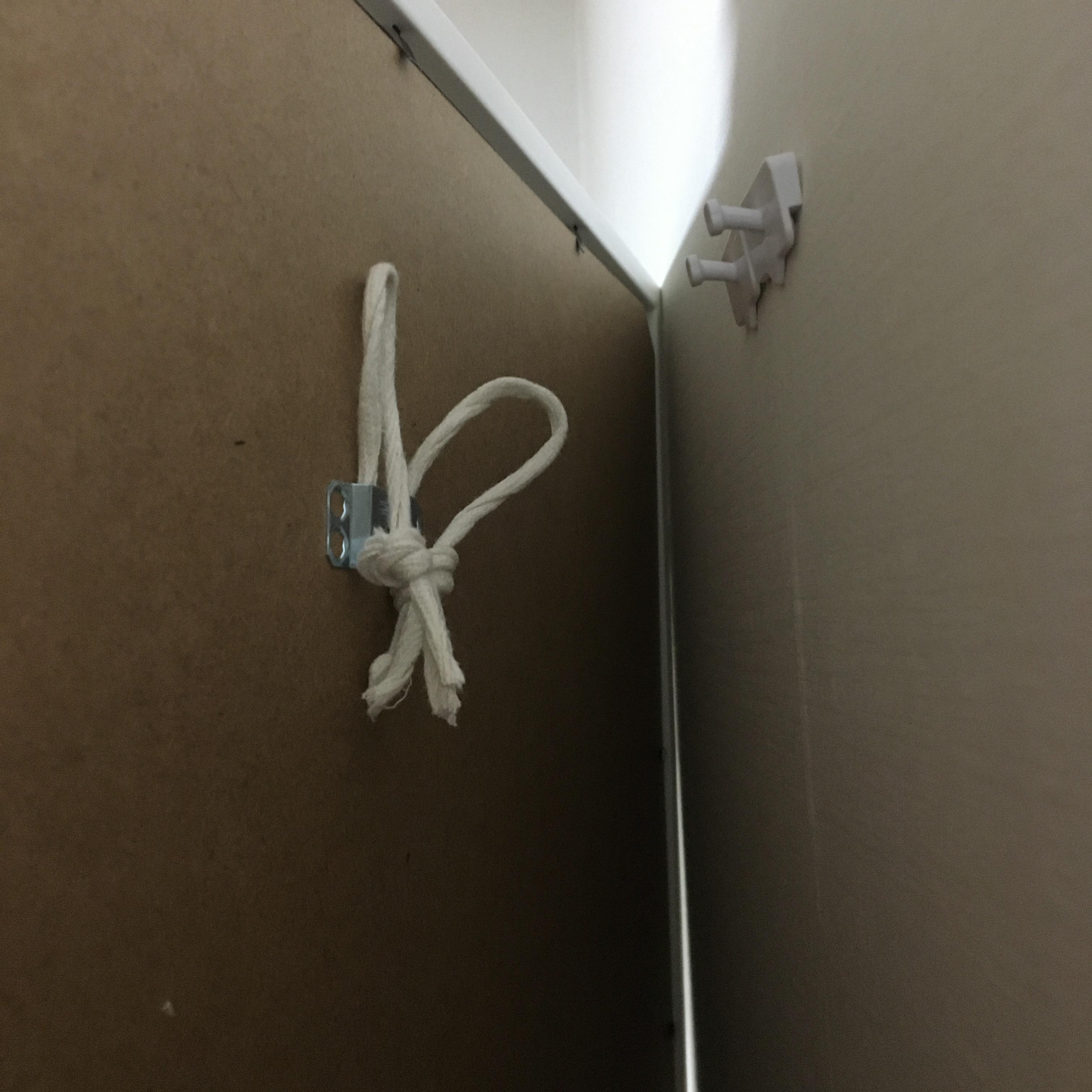 그런 다음, 액자 뒷면에 붙은 고리에도 끈을 각각 하나씩 묶어서 두 개를 걸었다.