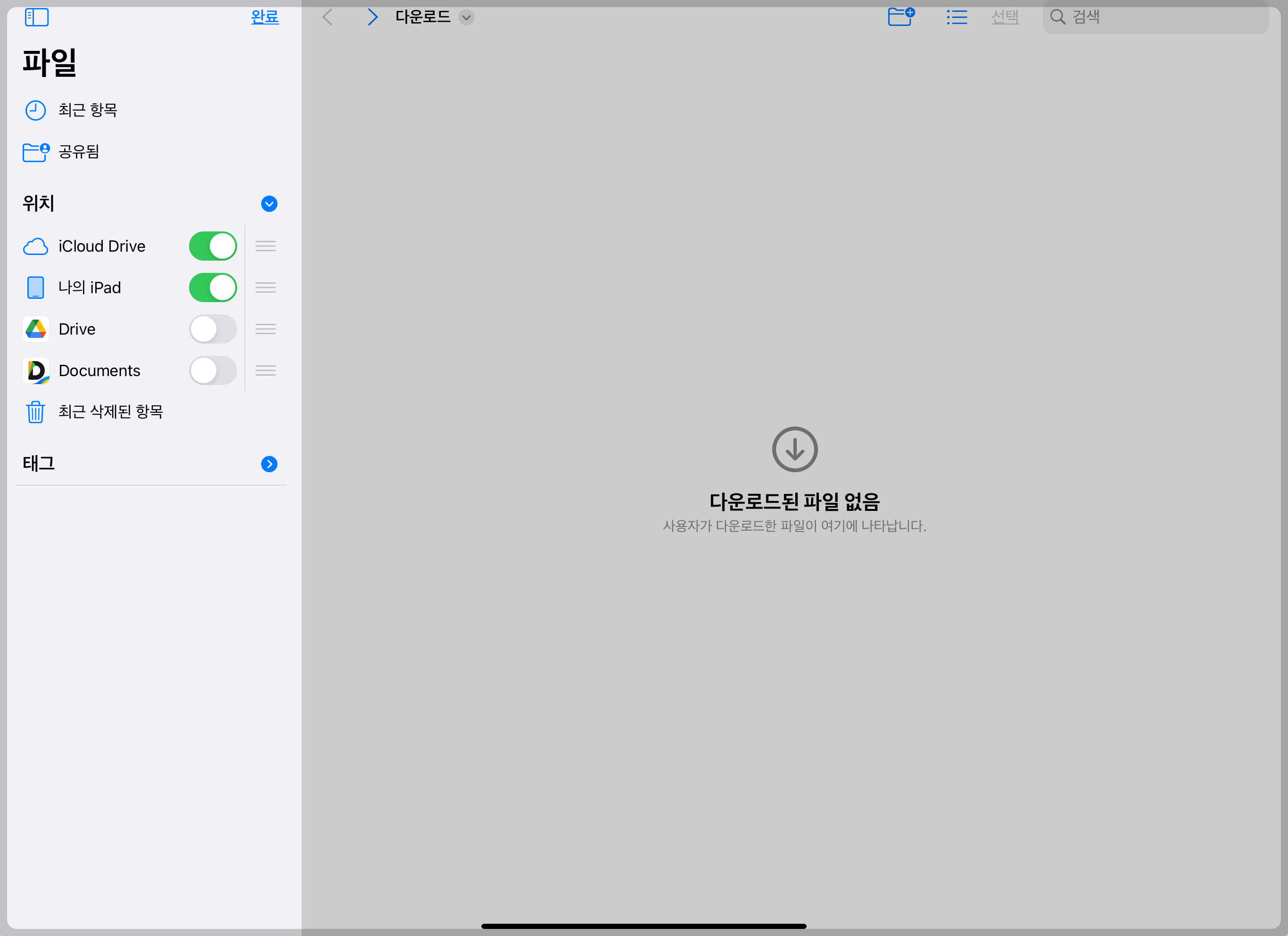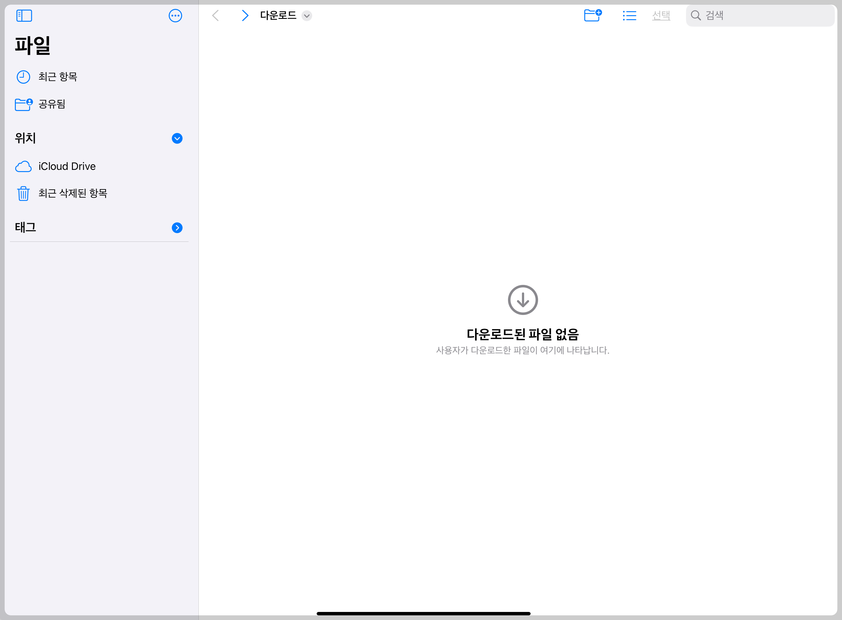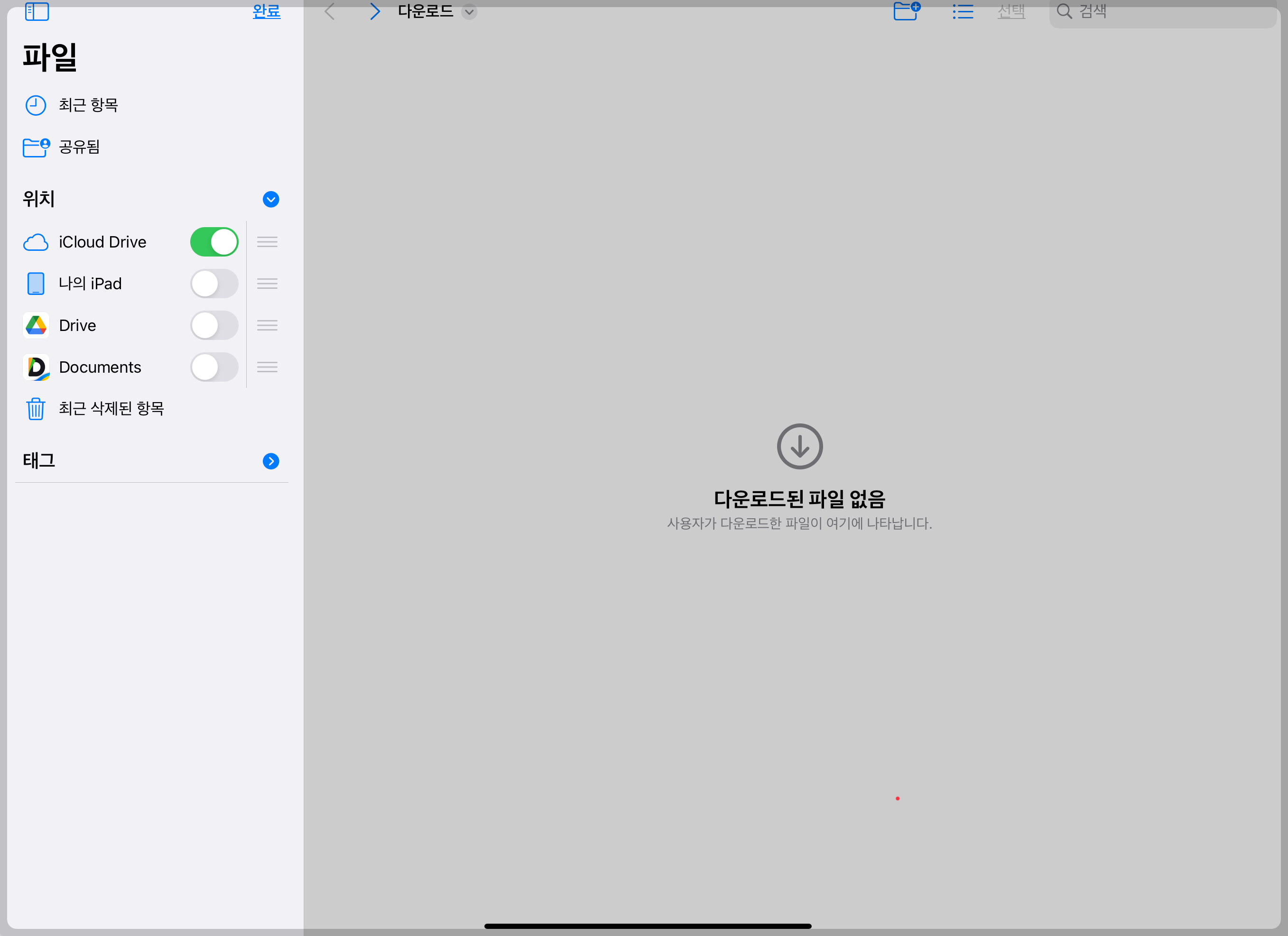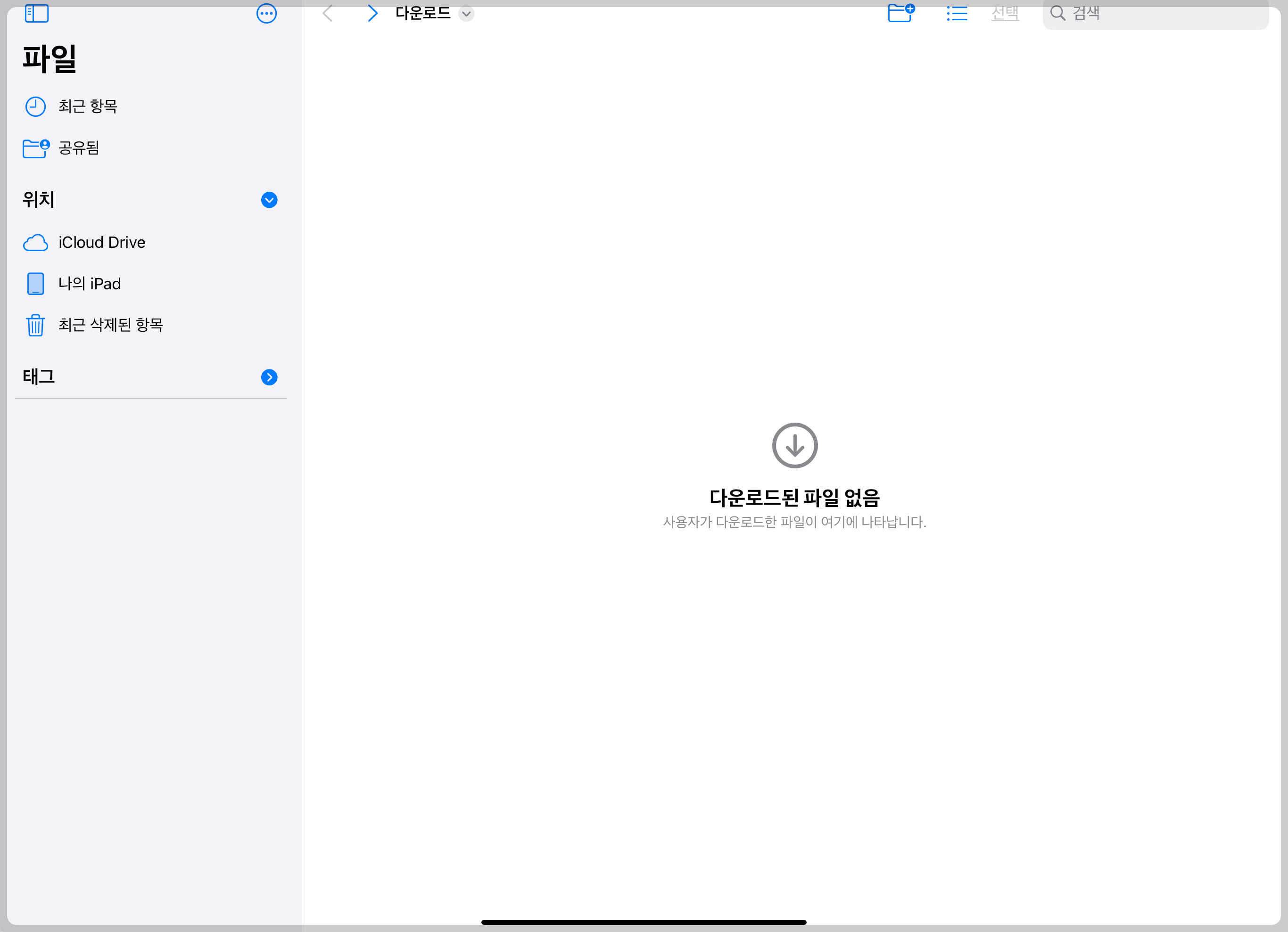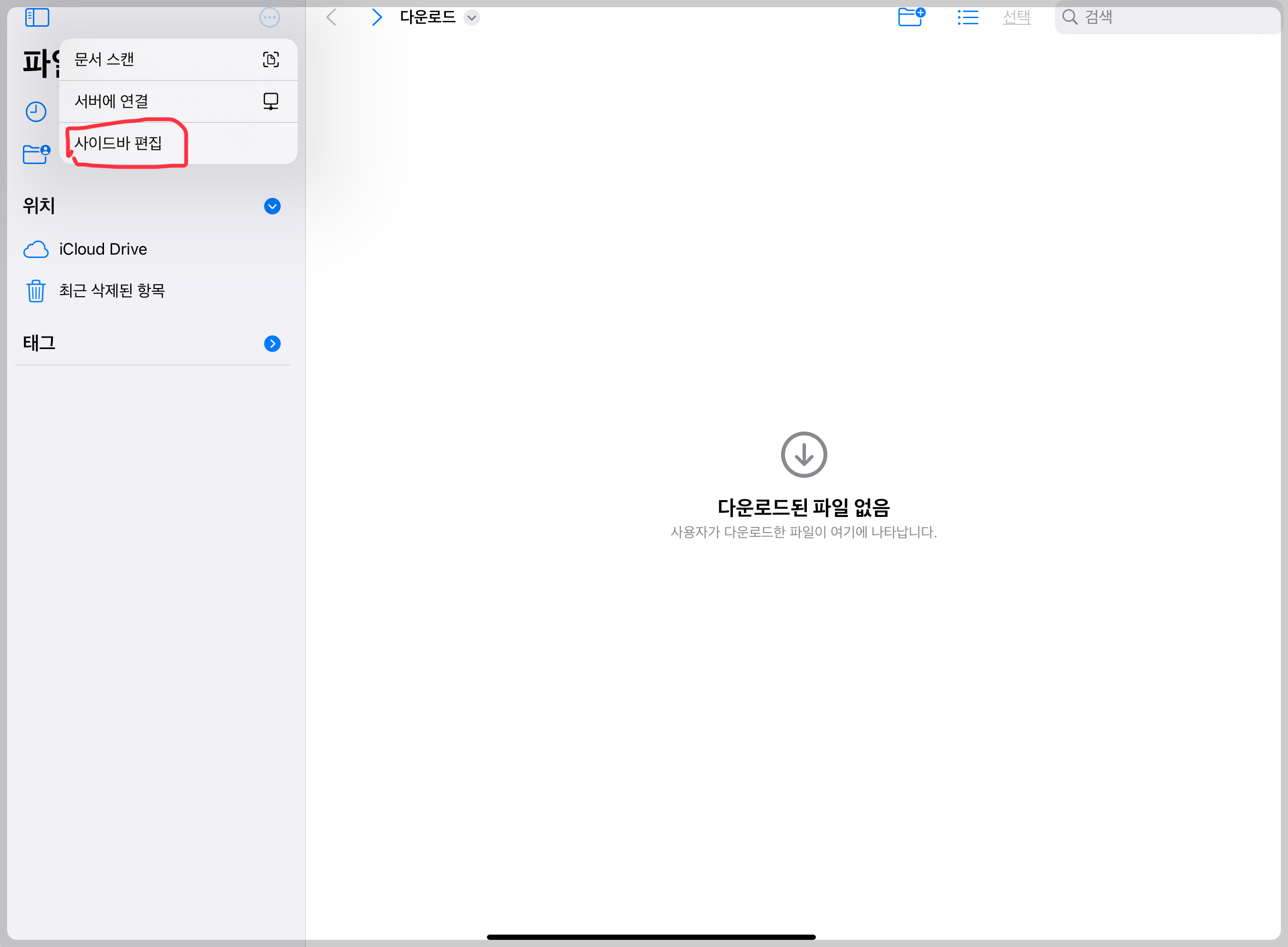 아이패드에서 다운로드한 파일을 찾기 위해 <파일>을 들어갔는데 '다운로드' 폴더가 보이지 않는 경우가 있다.
