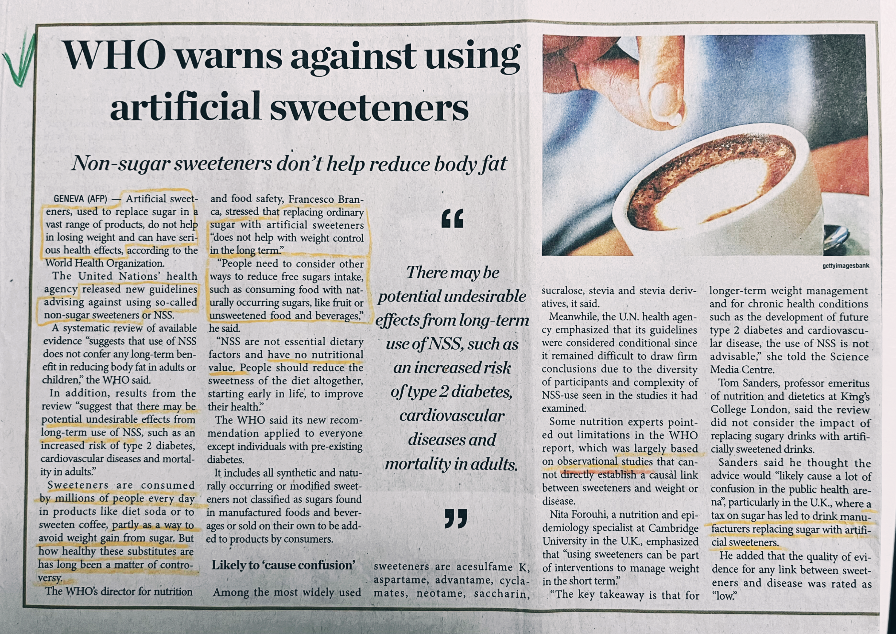 some nutrition experts pointed out limitations in the WHO report, which was largely based on observational studies that cannot directly establish a causal link between sweeteners and weight or disease.