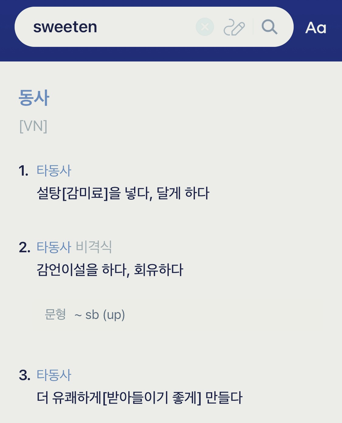 sweeten을 사용한 쉬운 예문 5개와 그 번역문입니다: