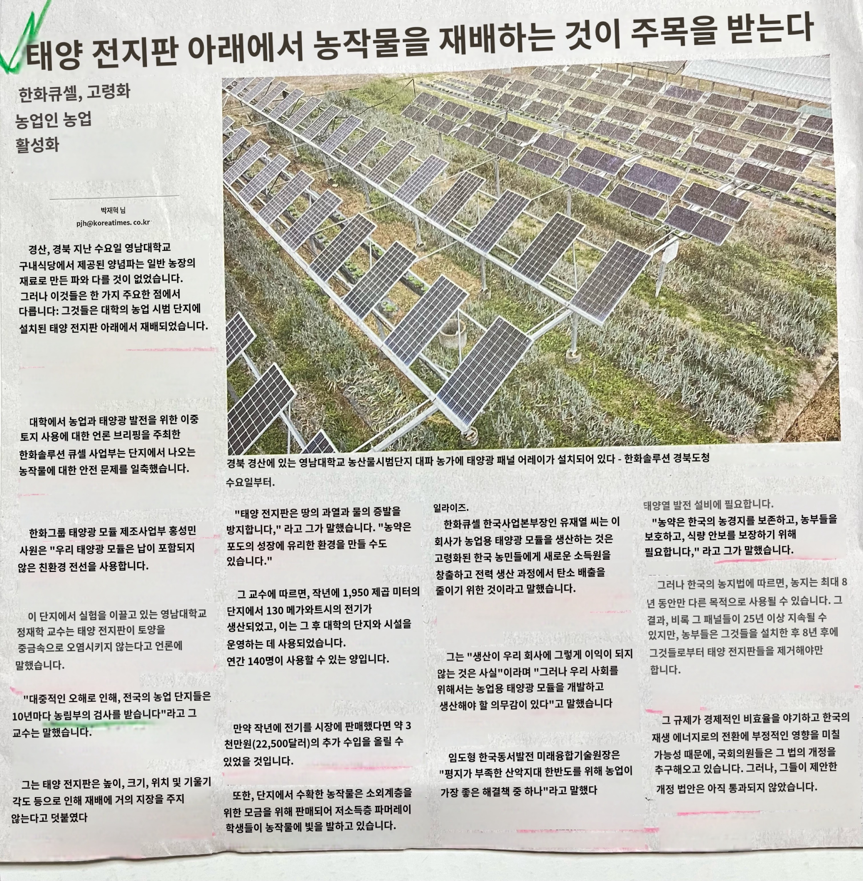고령 한국 농부들에게 새로운 소득원을 제공합니다.