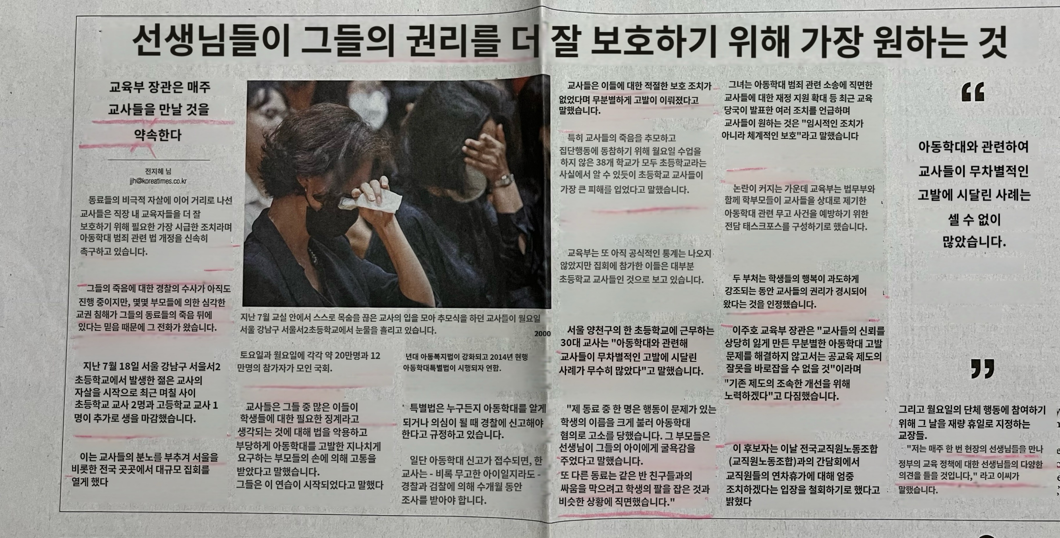교사들이 원하는 것은 "일시적인 조치가 아니라 체계적인 보호"이다