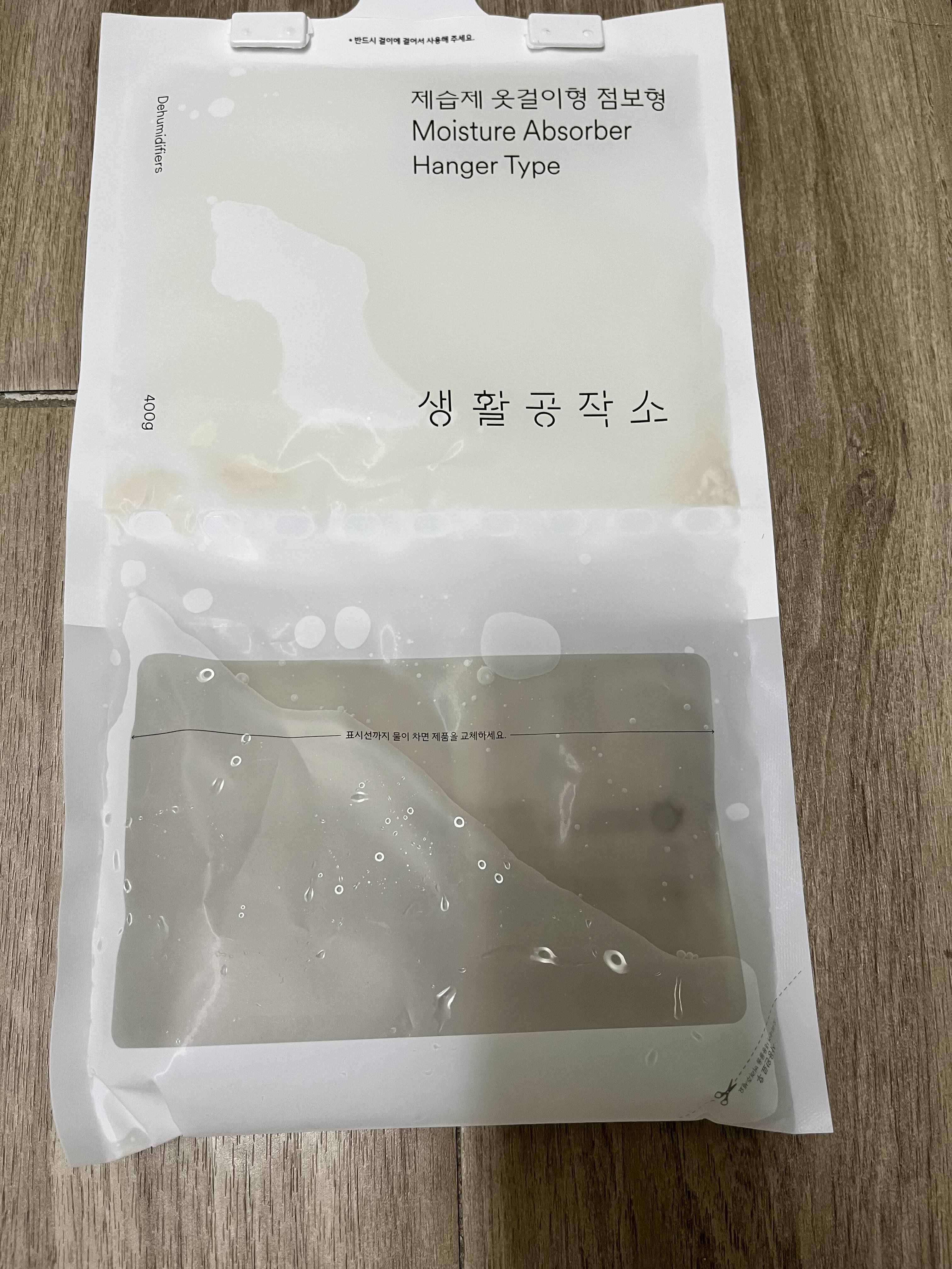 단단한 플라스틱 통에 염화칼슘을 담아두는 방법을 써왔는데 물이 금방금방 모아지는 것 같지가 않아서 다른 걸 찾다가 발견한 제품.