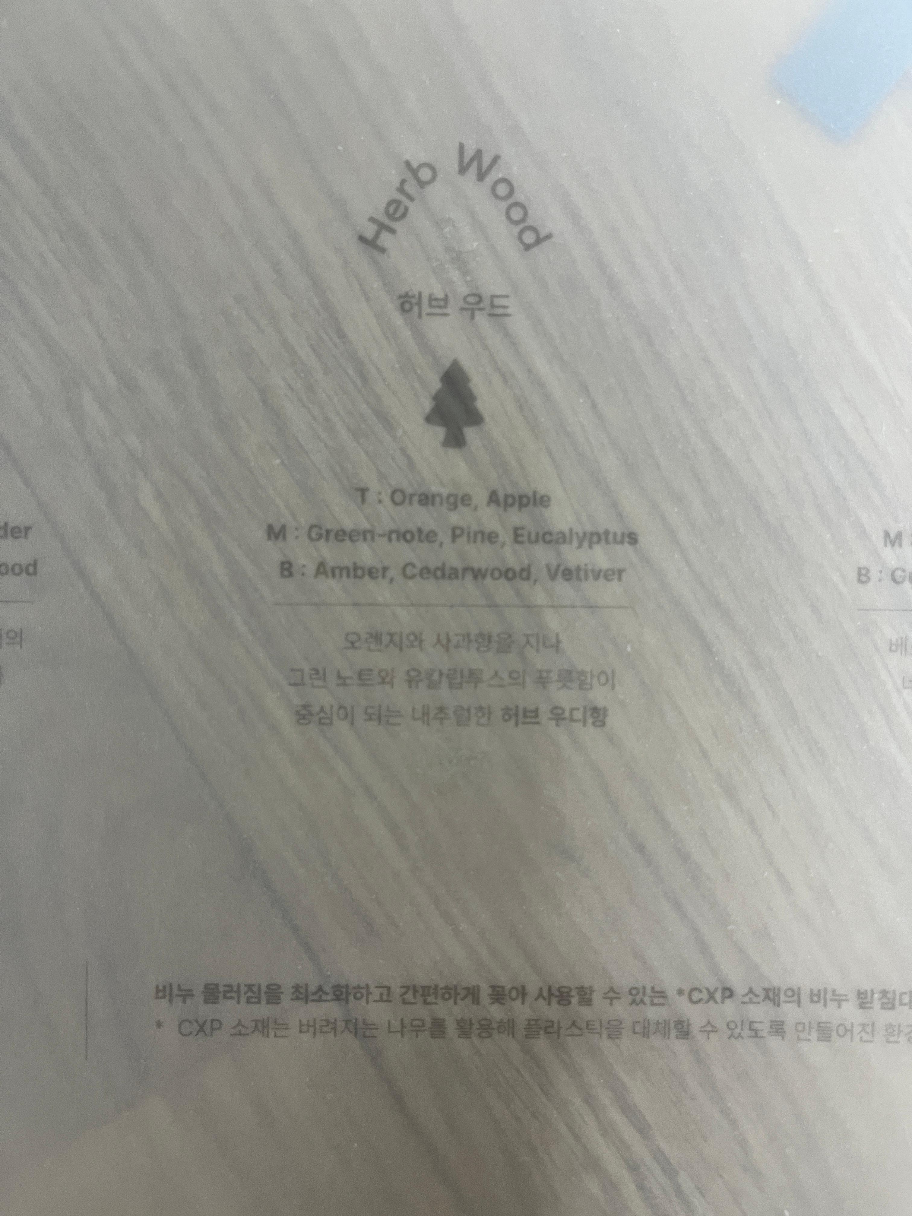 오렌지와 사과향을 지나 그린노트와 유칼립투스의 푸릇함이 중심이 되는 내추럴한 허브 우디향
