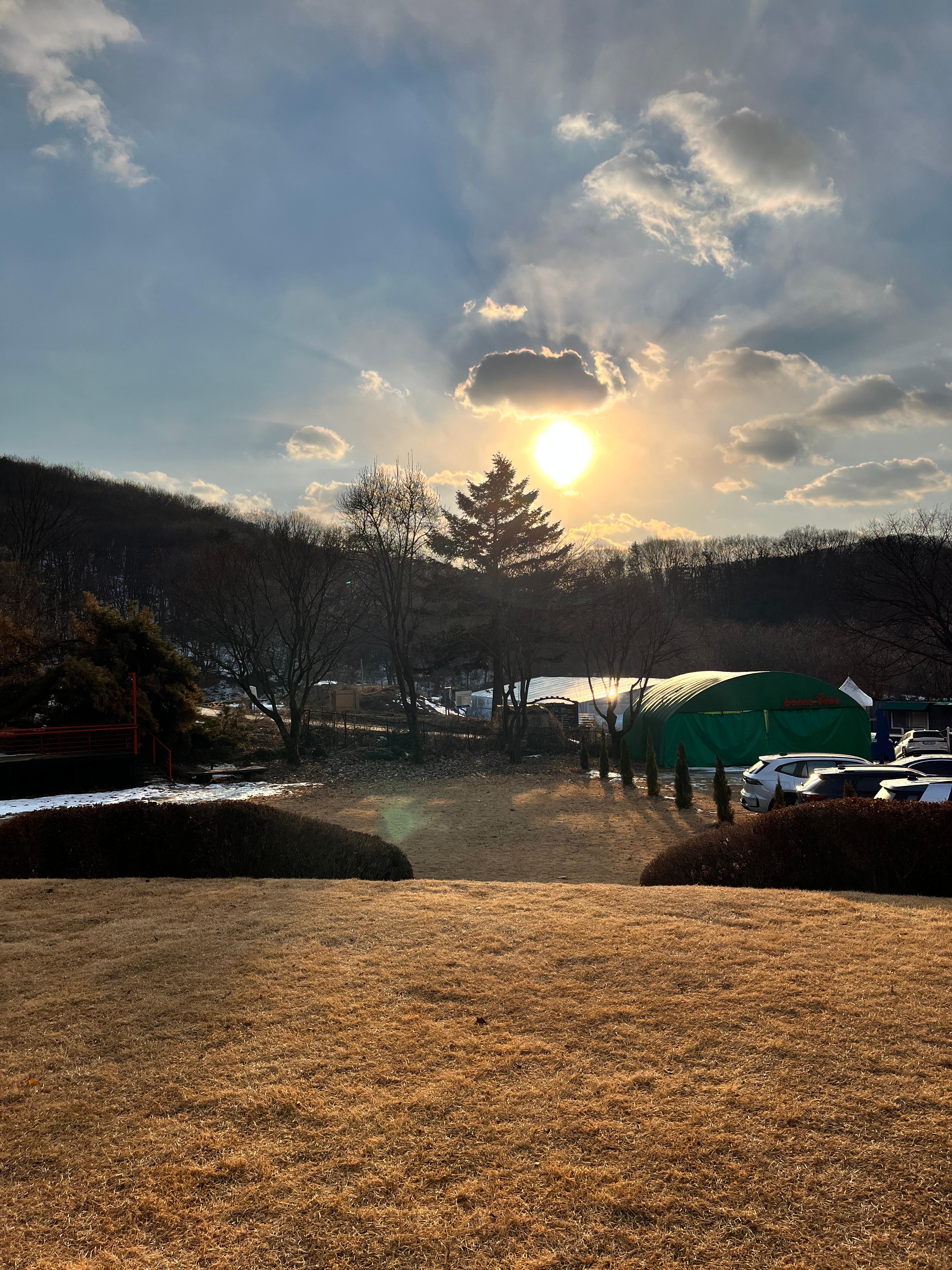 1층은 창이 시원하게 있어서 바깥 산과 하늘을 볼 수 있고, 마당이 보였다.