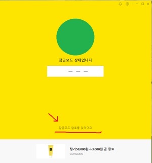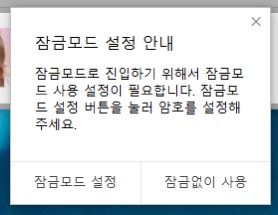 잠금모드 설정을 누를 경우, 아래와 같이 잠금모드 암호를 설정하라는 화면이 뜹니다.