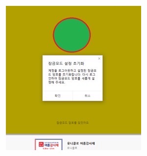 이제 위에 빨간 화살표로 제가 표시한 것처럼 <잠금모드 암호를 잊었어요> 라는 메뉴가 보입니다.