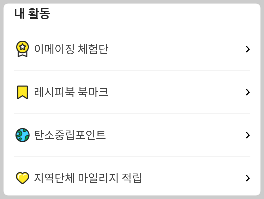 마이페이지에서 [내 활동] 메뉴에 있는 [탄소중립포인트] 클릭 >>