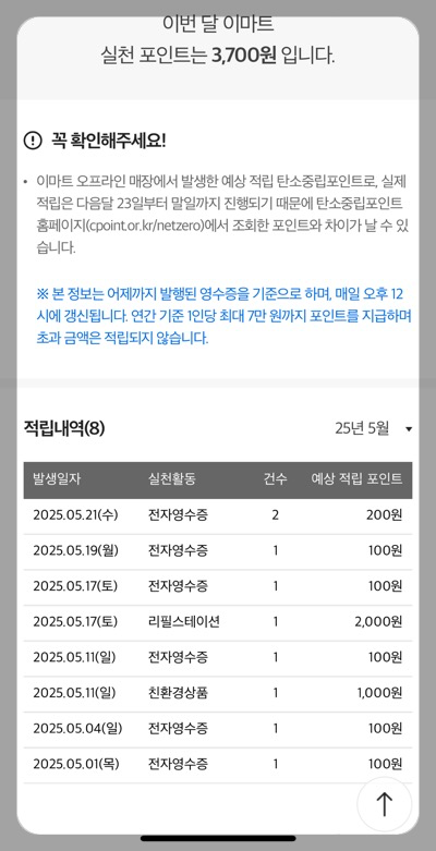 다음과 같이 이마트 앱에서 실천 포인트를 확인할 수도 있어요.